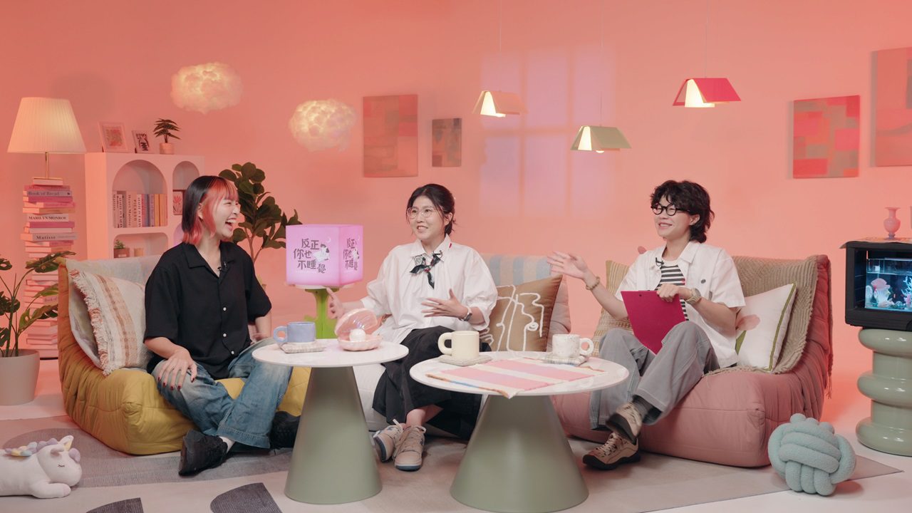 十七歲的采翎(左)罕見鬆口談起那些光環背後的高壓時刻、主持人吳曉樂(中)與傑尼(右) 照片提供:小公視