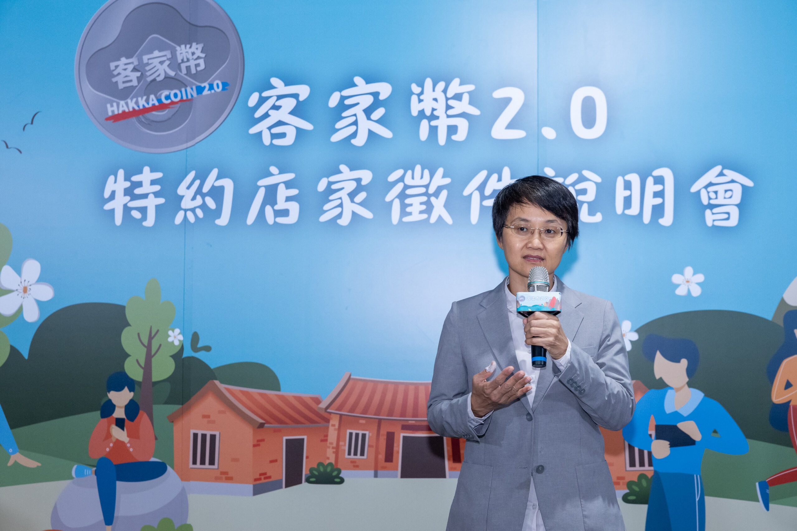 委會古主委在致詞時表示客家幣2.0擴大店家招募範圍至全國,更放寬限制,具稅無稅籍具營業事實之店家或攤位,只要外場人員具備客語服務能力都可以加入,期透過客家幣2.0政策鼓勵大家走入講客的特約店家,以客語溝通消費,能讓語言傳承與在地經濟發展達成雙贏。此舉將讓客語更進一步的走入日常轉化為公共生活中的友善服務力,為店家品牌注入獨特的文化加值。