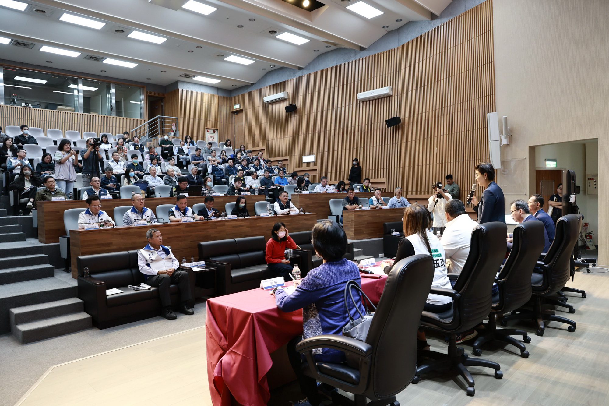 此次會議由立法委員游顥主持,交通部常務次長林國顯率領公路局、航港局、交通科技及資訊司、觀光署、鐵路局、水利署等相關單位人員到場與會,立法委員麥玉珍亦到場關心。