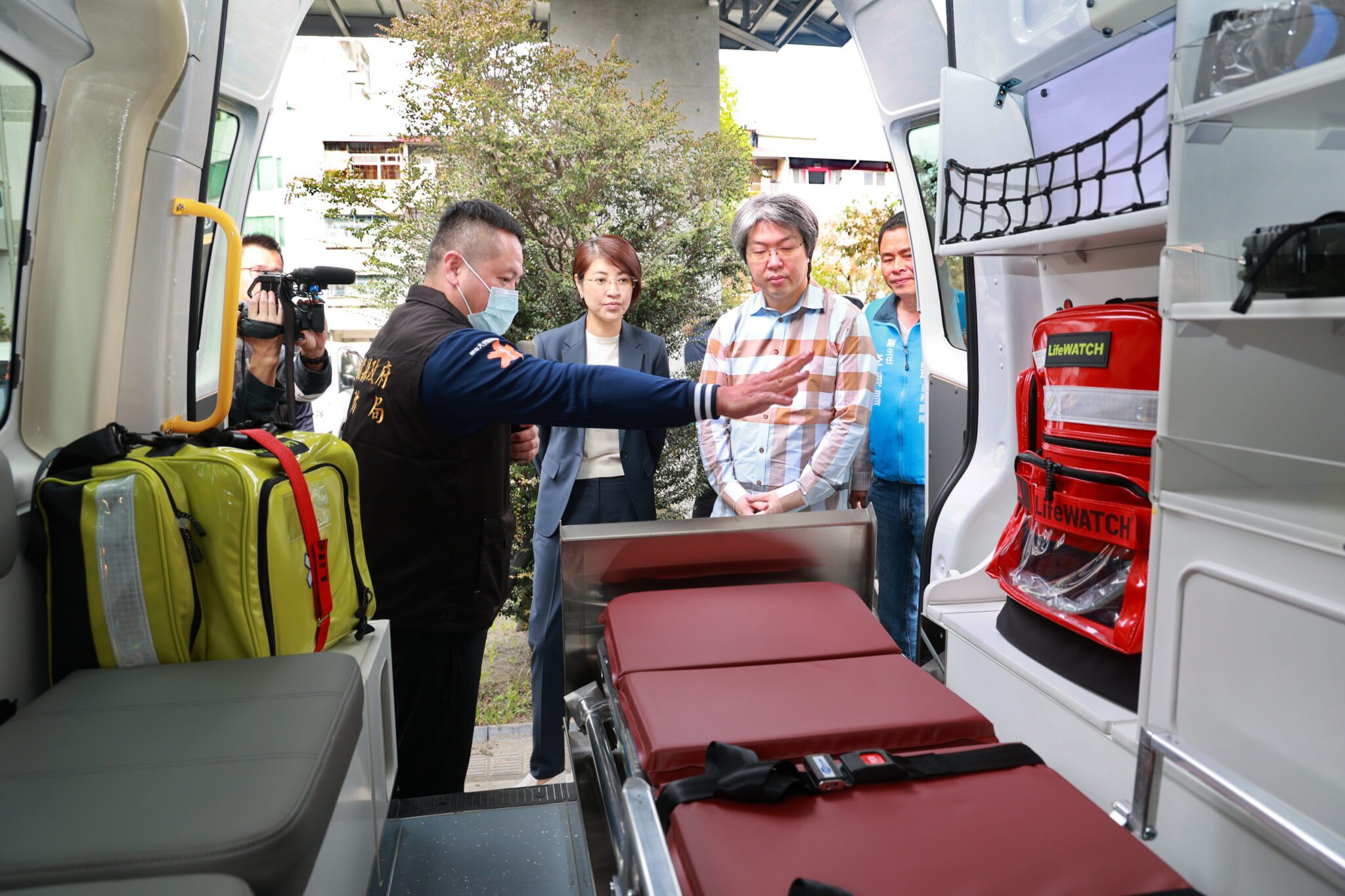 消防局長陳興傑感謝富宇建設善舉,指出這輛高頂救護車內部配備先進器材,包括到院前心臟監測及抑制處理設備,可在運送過程中即時傳輸病人資訊至醫院,讓醫療團隊提前準備。特別對南投縣高齡人口較多的特性,這項配備將大幅提升心血管疾病等急症的救治效率。