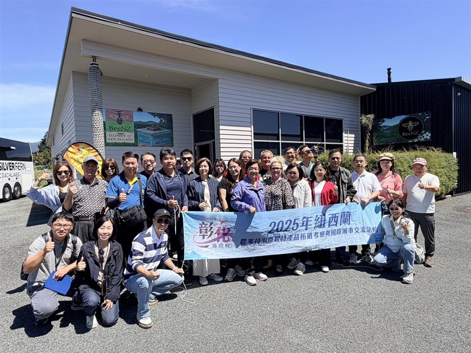 為提升本縣農特產品競爭力、拓展國際視野,彰化縣長王惠美於12月8日率領本縣農業團體重要領袖農會總幹事前往紐西蘭當地蜂蜜工廠與奇異果園考察,展開深度參訪交流。彰化縣近年積極推廣蜂蜜產業,不僅每年舉辦蜂蜜評鑑,提升產品質量與品牌形象,也在行銷方案中尋求更多創新能量。本次出訪走入紐西蘭指標性蜂蜜工廠 BeeNZ honey,從蜂巢到罐裝完整認識世界級蜂蜜的生產標準,並學習UMF™(Unique Mānuka Factor,獨特麥盧卡因子)國際分級制度。此外,參訪團也前往奇異果園,深入了解紐西蘭如何以行銷策略成功打造國家級農產品牌,藉由經驗借鏡,帶動彰化農產行銷更加提升。