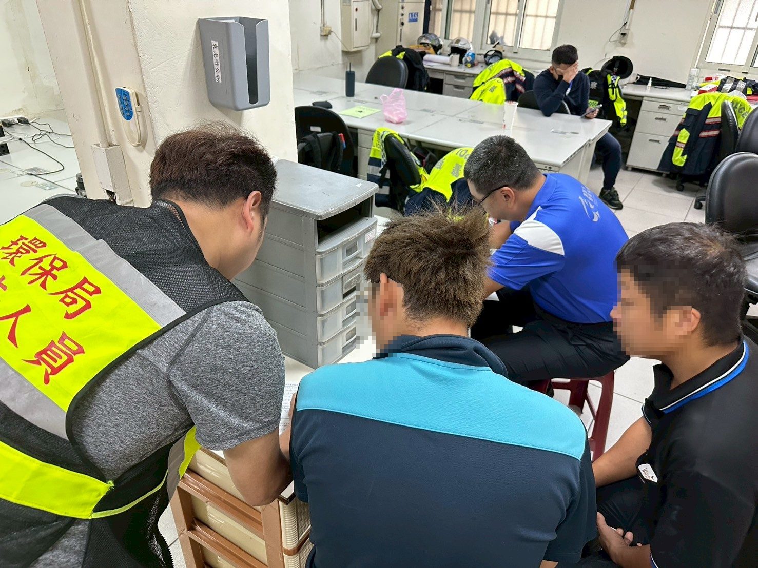 現場稽查人員稽查棄置案件情形,要求案件關係人到案說明,並進行後續案件移送作業