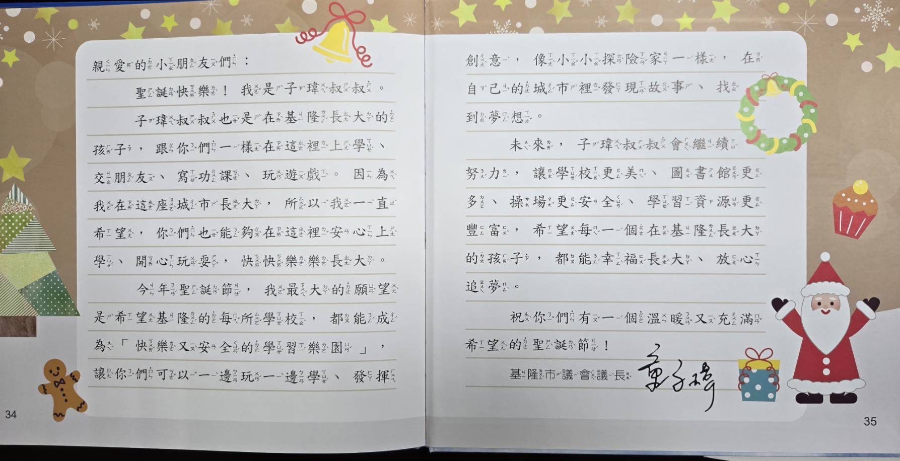 活動中由長輩牽著孩子走上街頭,讓孩子主動上前大聲喊出「聖誕快樂」,互動過程溫馨逗趣。