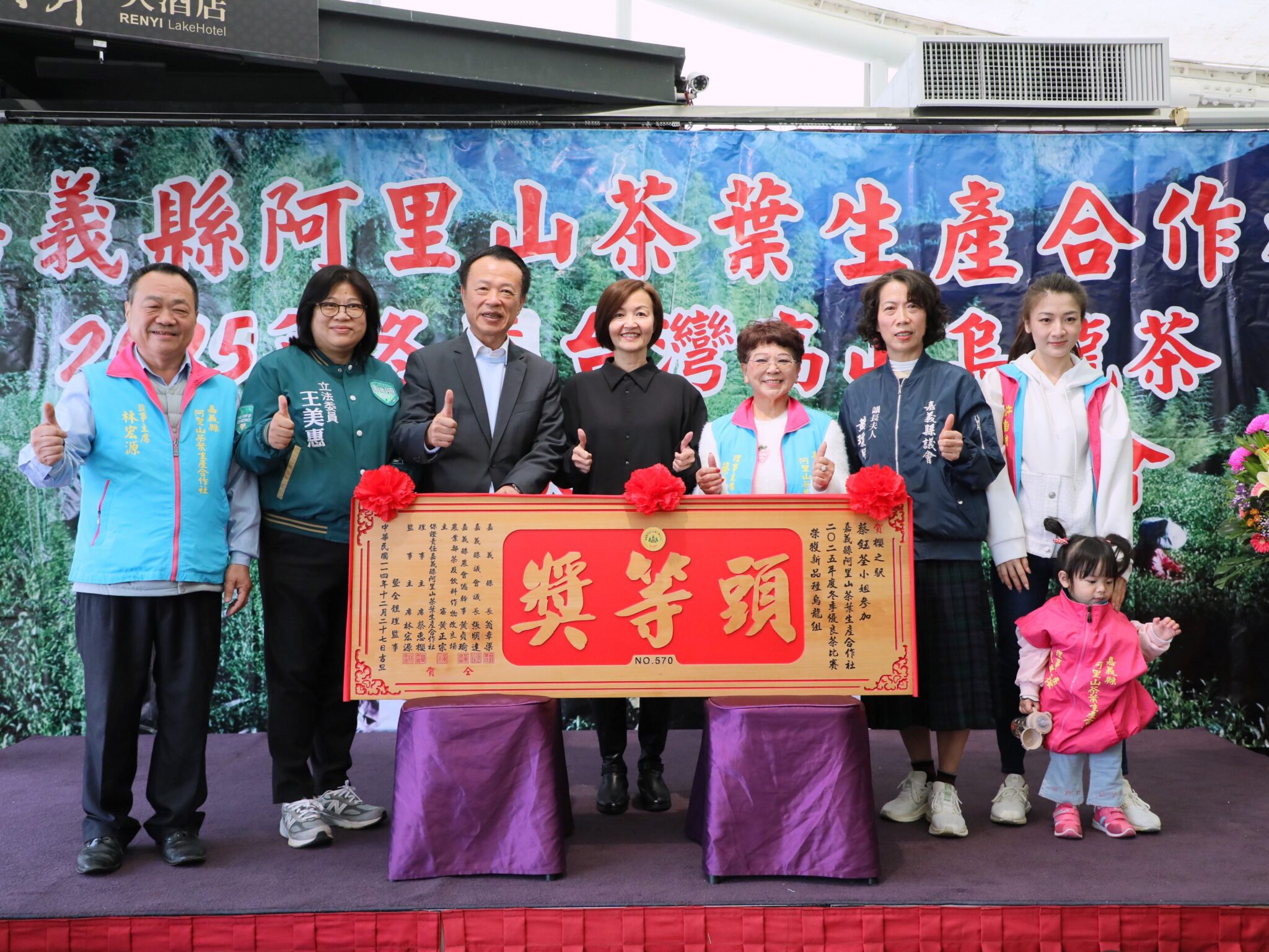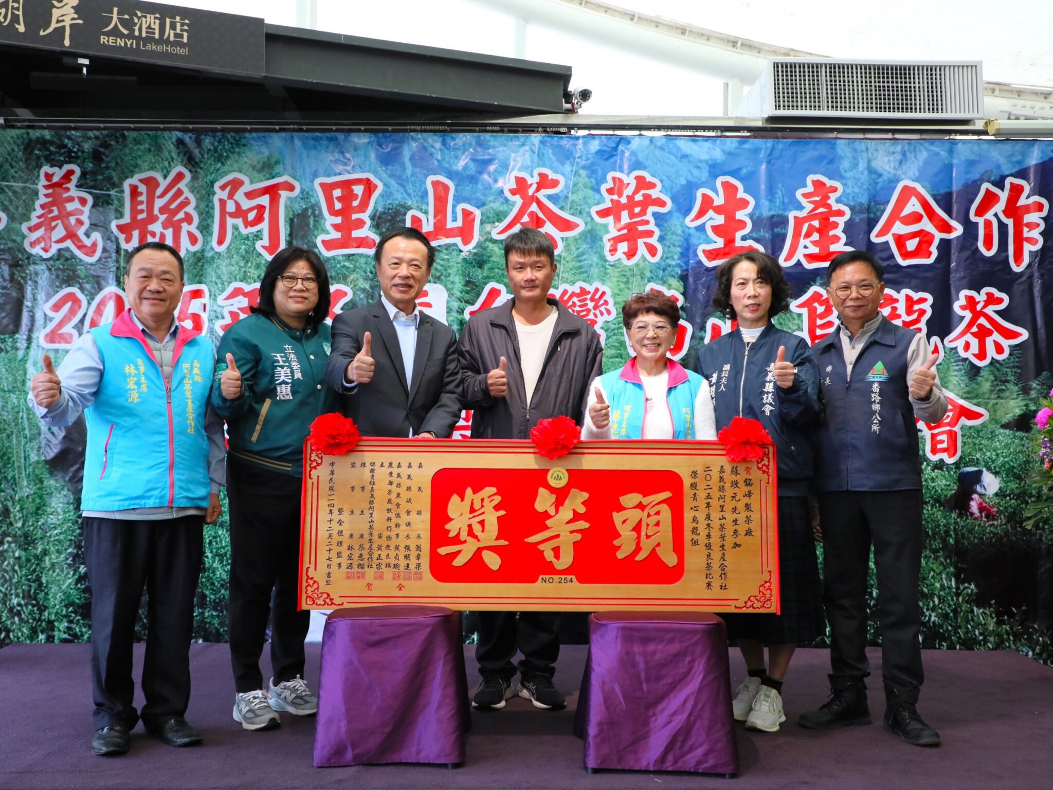 保證責任嘉義縣阿里山茶葉生產合作社今(27)日在番路鄉仁義湖岸大酒店舉辦「2025年冬季台灣高山烏龍茶優良茶頒獎典禮暨展售會」。嘉義縣長翁章梁親自出席並頒發匾額,對獲獎者表示祝賀,並勉勵業者持續努力,保持優異表現。