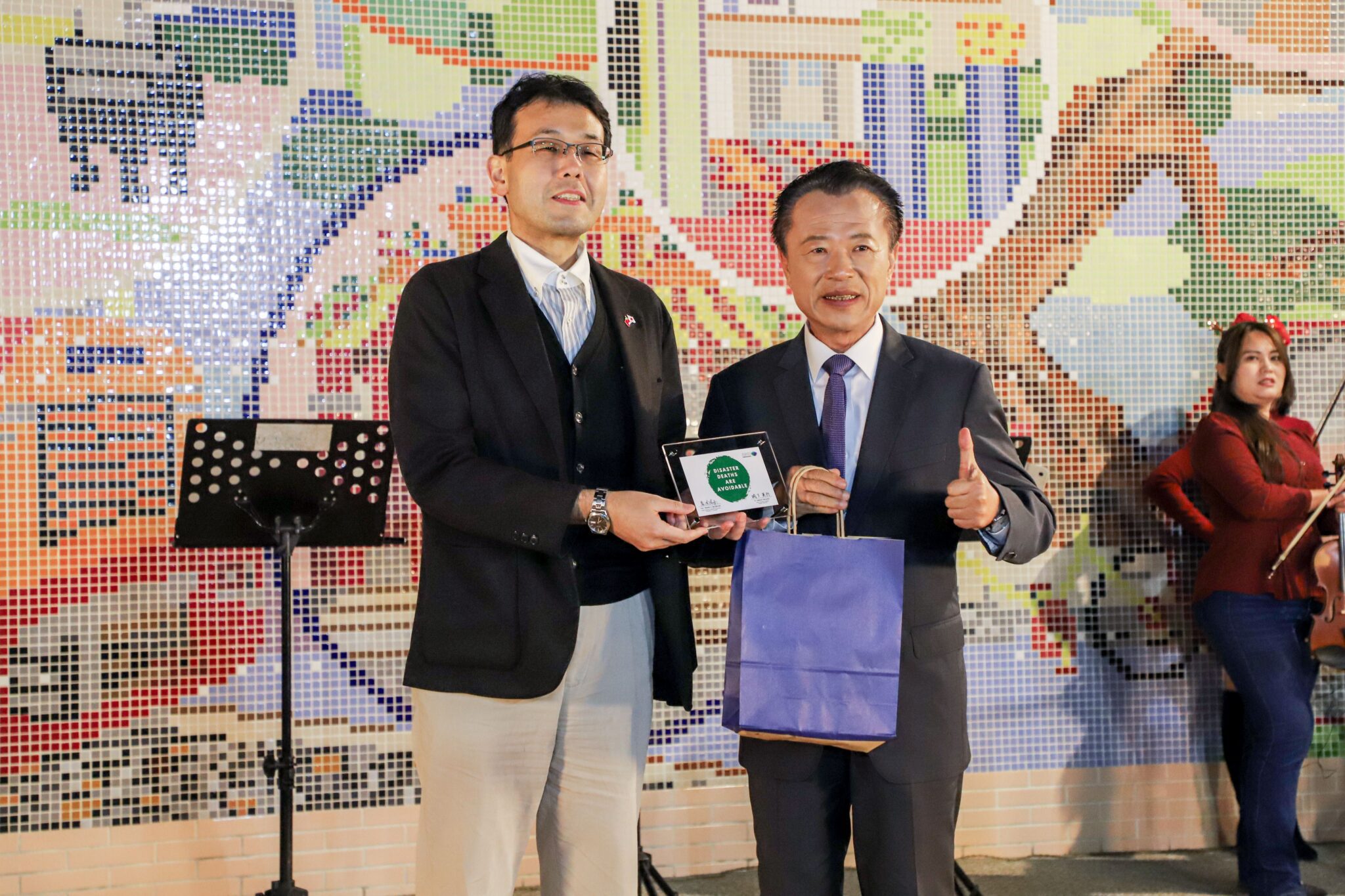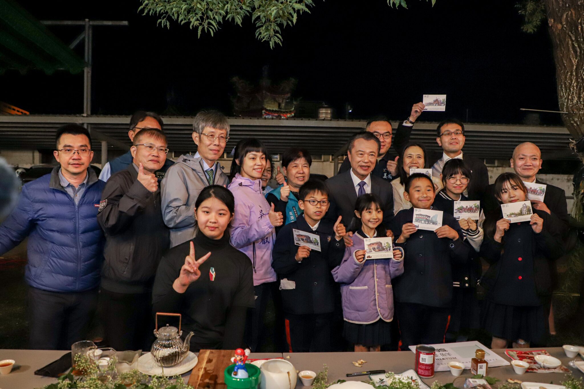 晚宴中雙溪國小全體師生及家長熱情接待日本賓客,翁章梁也以茶席、阿里山高山茶與「嘉義優鮮」農特產品款待外賓。
