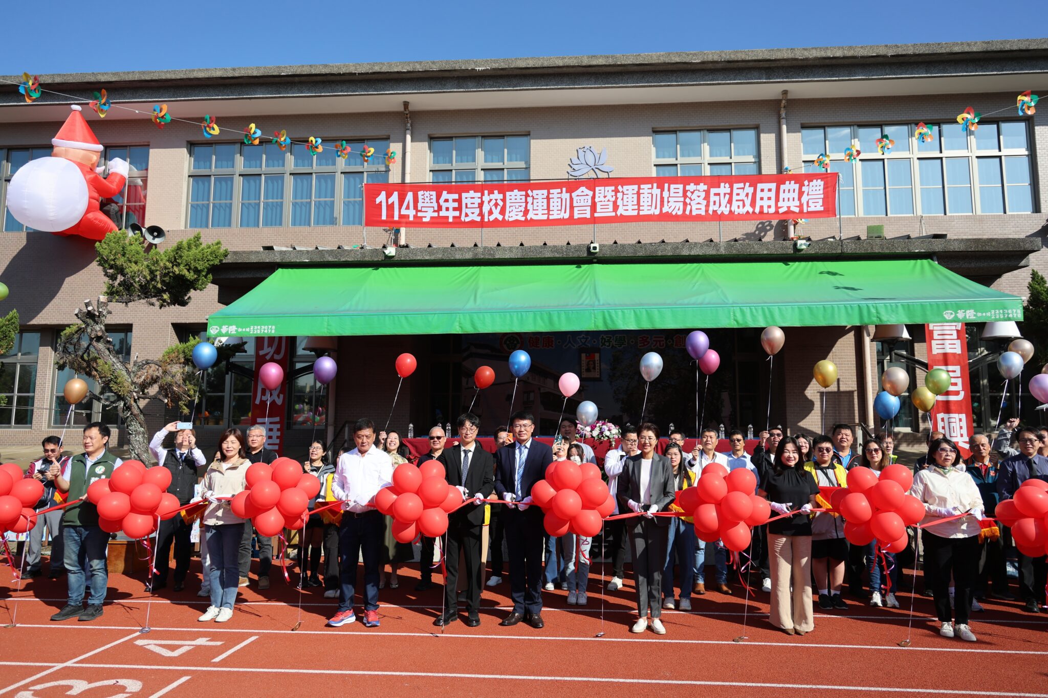 草屯鎮富功國小29日上午舉行「114學年度校慶運動會暨跑道落成啟用典禮」,數百位師生與家長熱情參與,熱鬧歡慶富功生日以及校園運動場歷時一年多的整建完工圓滿啟用。嶄新的跑道和周邊設施,將為學童提供更安全、優質的學習與運動環境。