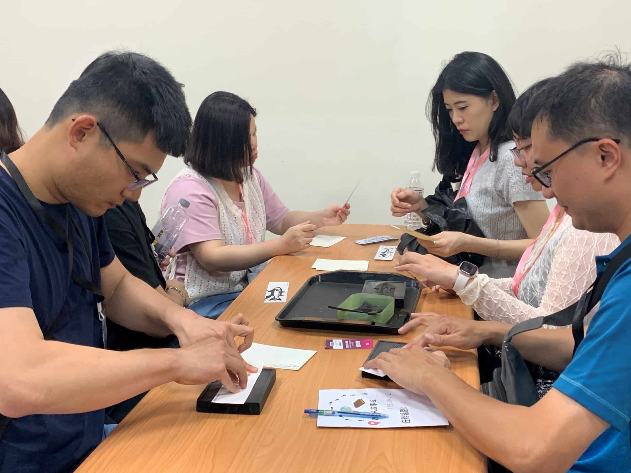參加者體驗魚拓明信片手作,把今天的相遇拓印成一張專屬回憶