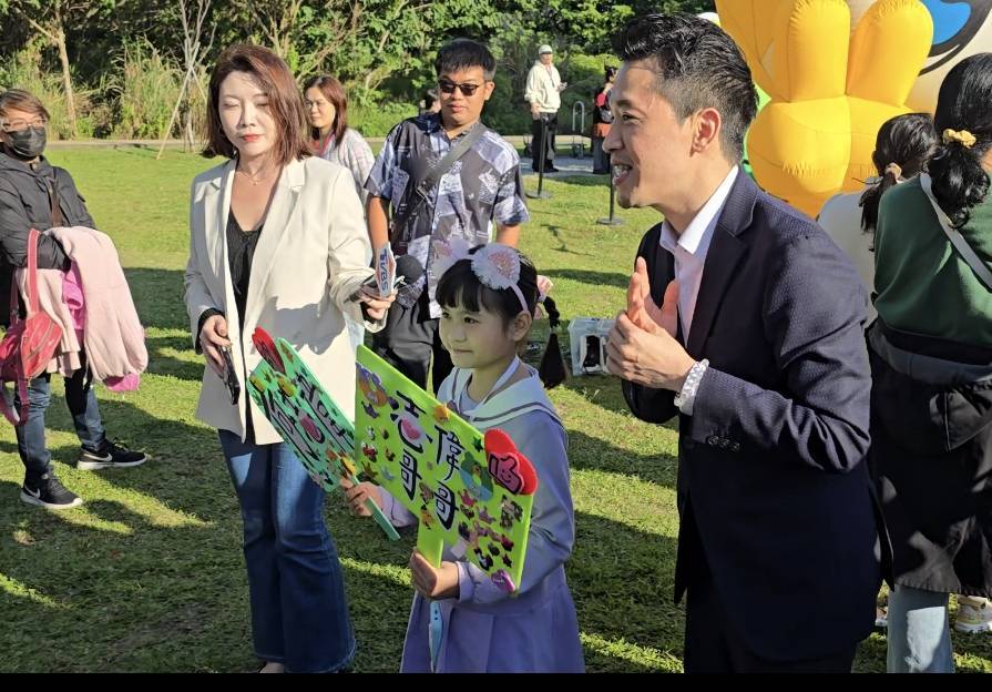 總統府副秘書長何志偉7日在桃園市蘆竹區南崁五福宮舉辦「桃園HO幸福親子活動」,現場吸引近千大小朋友到場,現場安排大型親子遊具,還有藝人帶動唱,魔術師表演及有獎徵答,還提供爆米花、彩色鉛筆、冰淇淋等小禮物,許多小朋友在冬日暖陽中玩得不亦樂乎。何志偉則表示,他要代表賴清德總統向大小朋友們問好,也希望小朋友能夠玩得開心。