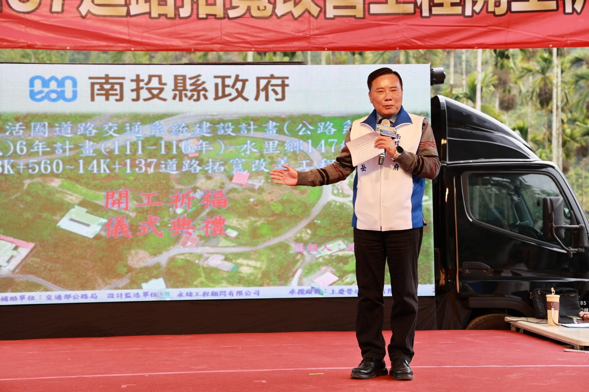許縣長表示,南投縣幅員遼闊,從國姓到水里,地方鄉親一直期待有一條安全、便利的道路。縣府之前已完成147線0K+000~7K+300路段拓寬,這是第二階段工程,未來全線打通後,不僅可讓甲類大客車通行、方便會車,更能串聯鄉鎮觀光路線,對農作物運輸、學生通學及地方發展都帶來重大助益。」