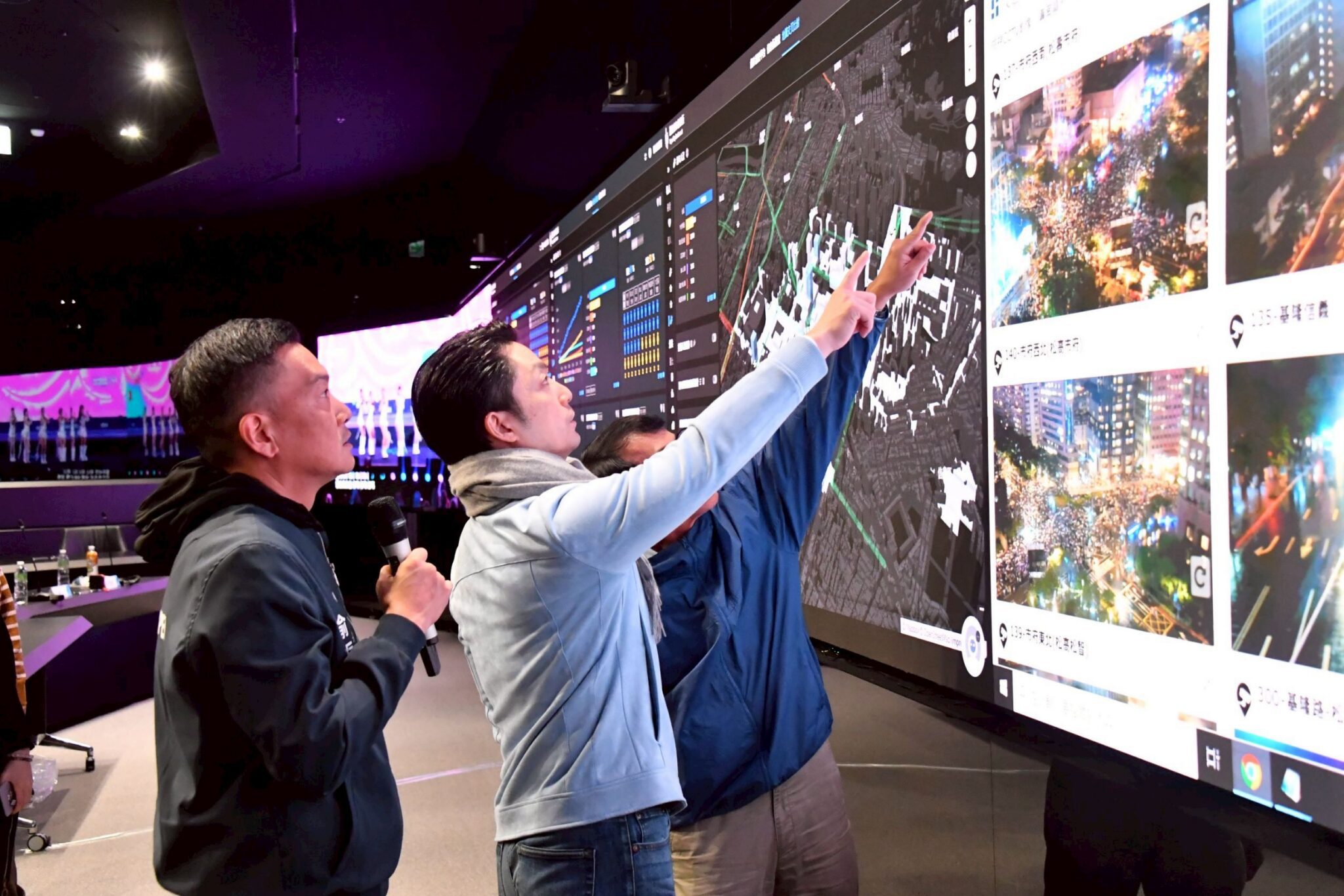 蔣萬安在登台倒數前,也先前往跨年應變中心及警察局前進指揮所,關心現場工作人員。[圖:臺北市政府]