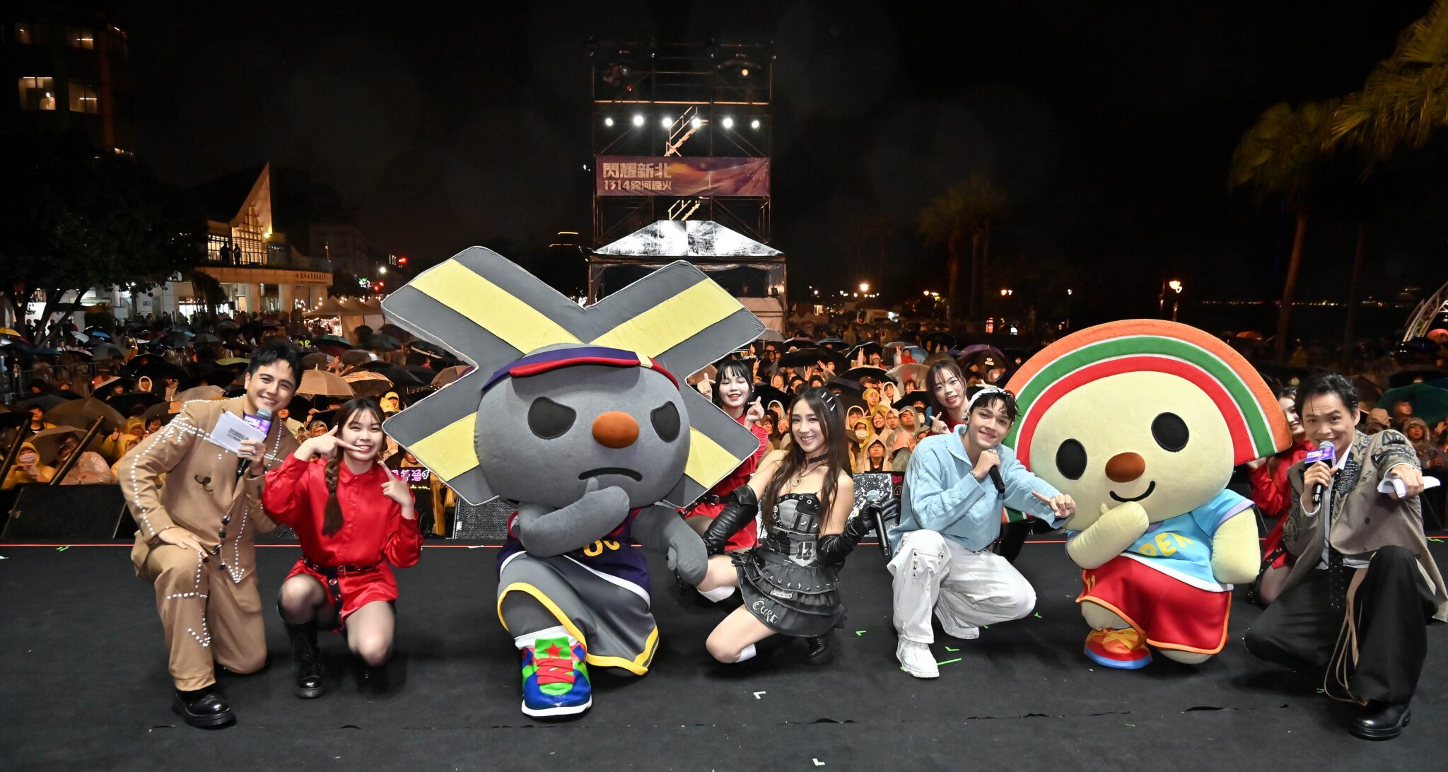 2026 新北八里跨年晚會在寒冷天氣中登場,低溫加上飄雨,卻完全澆不熄現場熱情,八里河畔依舊湧入大批民眾提早卡位,穿著雨衣、撐著雨傘,也要一起在河岸看演唱會。從舞台一開始,現場氣氛就一路被拉高,證明「只要卡司夠強,天氣不是問題」。