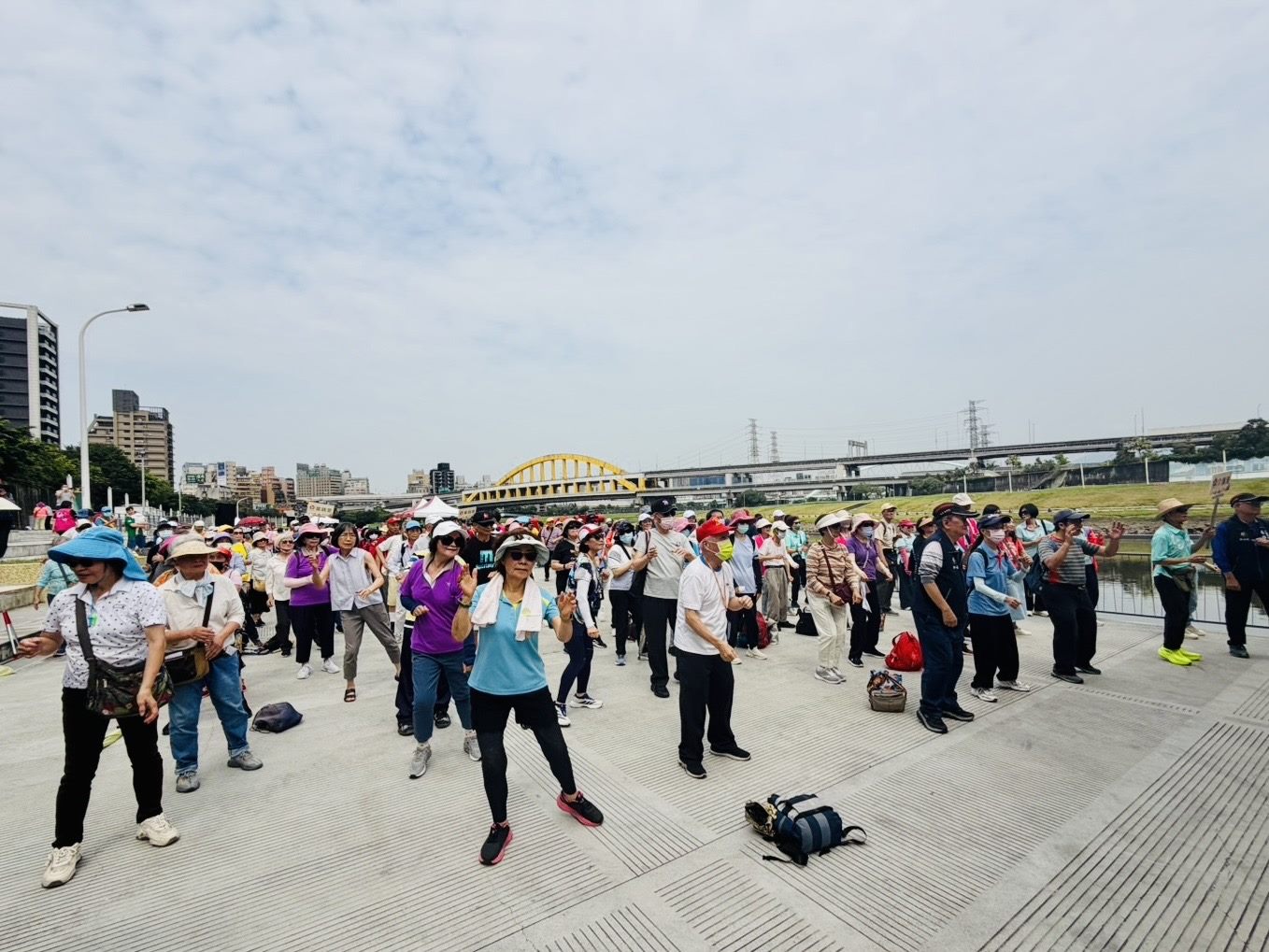 臺北市松山區公所訂於115年4月22日上午10時舉辦松山區民健行活動,活動由鄭朝元區長及各里里長里民共同步行基隆河環河步道,從彩虹橋旁的主舞台為起點出發,沿途經過基隆河畔,往麥帥一橋方向前進,並於麥帥二橋設立折返點,折返回主舞台,現場吸引大量民眾熱情參與、響應,藉此呼籲大家建立正確的防災常識,達到全民防災之目的。