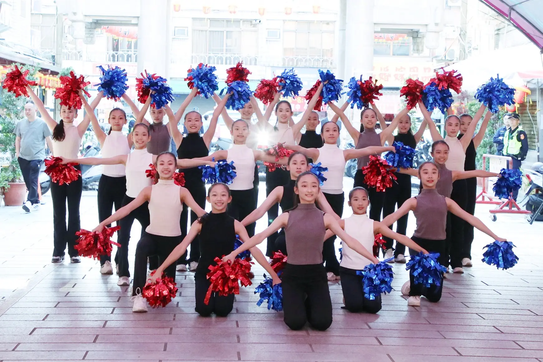 粗大Band 邀啦啦隊女神孟潔(中)PIZZALI(右二)合體拍〈在一起2026〉MV       照片提供:連鍾玖美滿娛樂有限公司