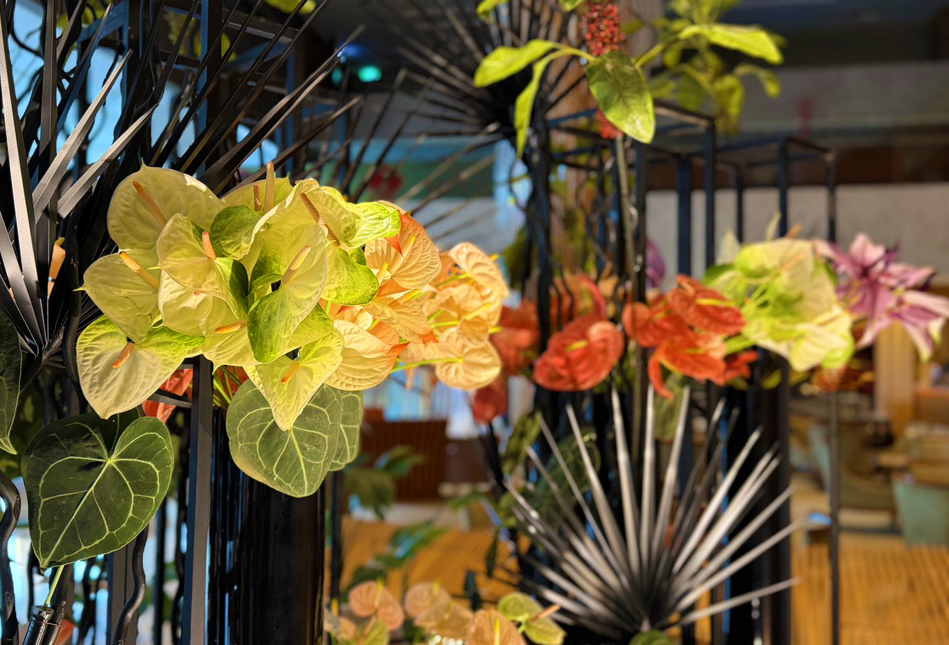 ▲以台南火鶴花為主角,透過鮮明色彩與優雅線條,展現自然之美與節慶祝福意象。(圖/台南香格里拉提供)