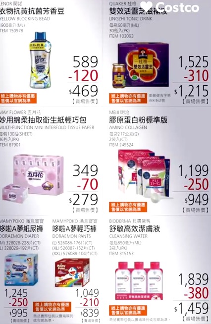 根據好市多釋出的優惠資訊,此次折扣力道涵蓋多元商品類別,整體優惠金額上看萬元以上。其中,高單價商品如原價逾6萬元的鑽石項鍊,最高可現省約1.3萬元;75吋4K顯示器搭配聲霸組合,原價2萬9999元優惠後價格為2萬3999元;家電產品如原價萬餘元的定頻除濕機也降價2300元只要8899元。日用品與民生消費部分,同樣提供有感折扣,包括清潔用品可省數百元,五月花衛生紙每組折價70元,優惠後價格降至279元;食品與零食品項亦有百元以上折扣空間。