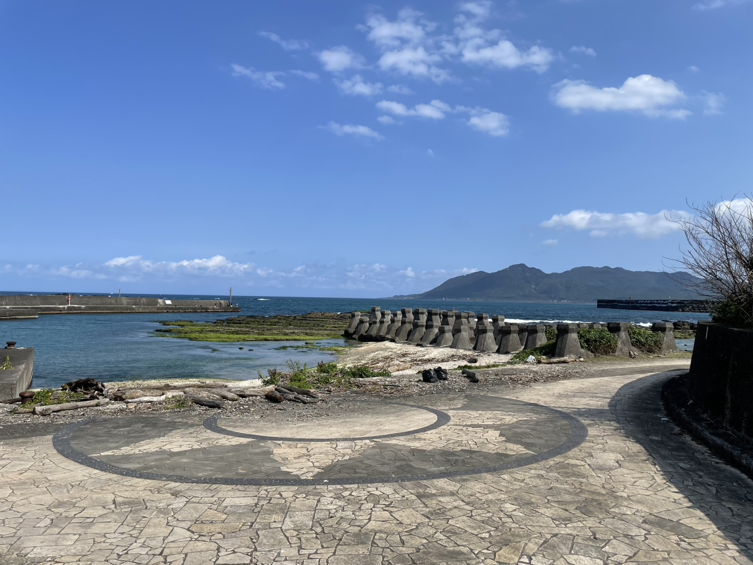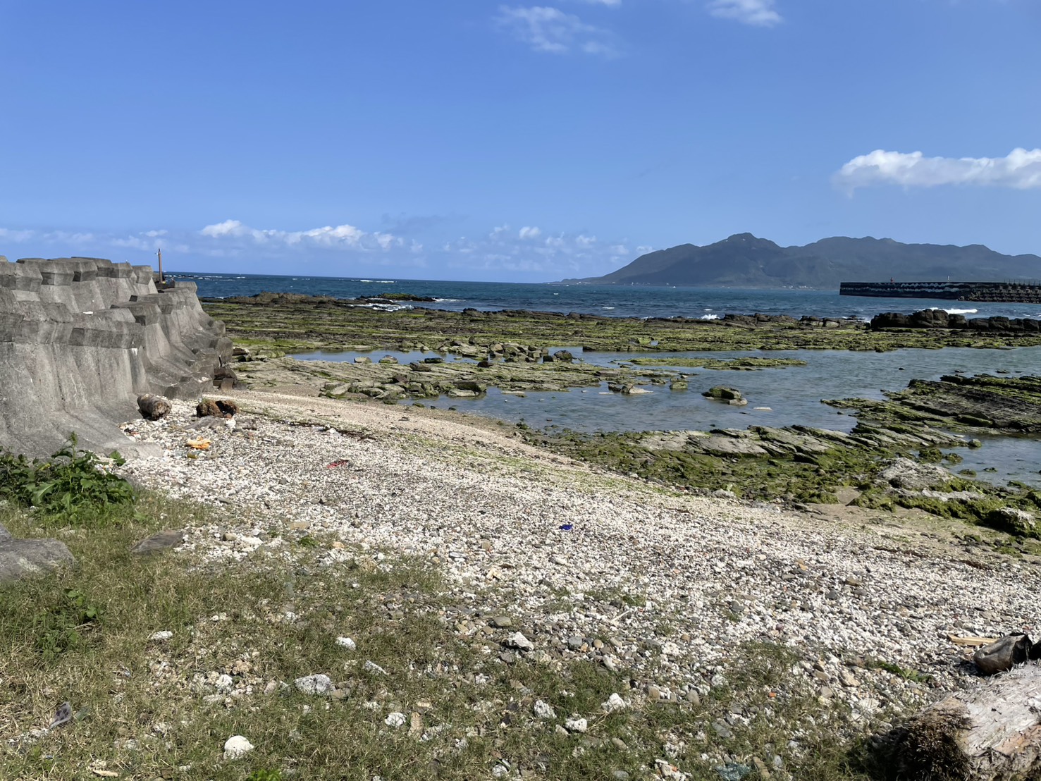 澳仔漁港沿岸潮間帶與步道景致,遠山海景交織成開闊視野