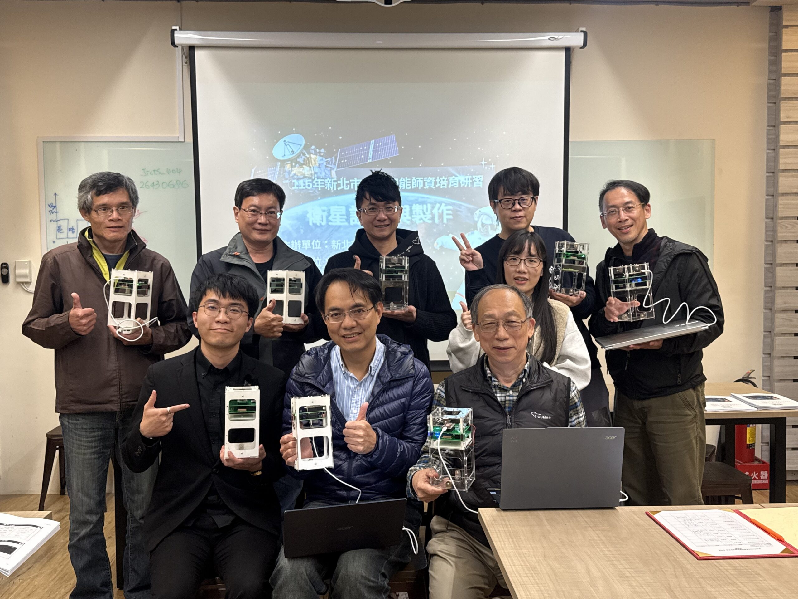 本次計畫由台灣學聯航太太空團隊協力推動「太空師資培育計畫」,以系統化課程協助教師跨入航太領域,建立教學與實作能力。課程內容涵蓋:航太科技發展趨勢與太空產業概論、衛星應用與地球觀測技術與感測器應用與資料收集、程式設計。在實作課程「Hello Satellite」中,教師親手進行:衛星組裝與系統建置、姿態量測與控制原理與「翻滾衛星」任務操作,並結合GPS定位與感測技術,深化對衛星運作與數據應用的理解。