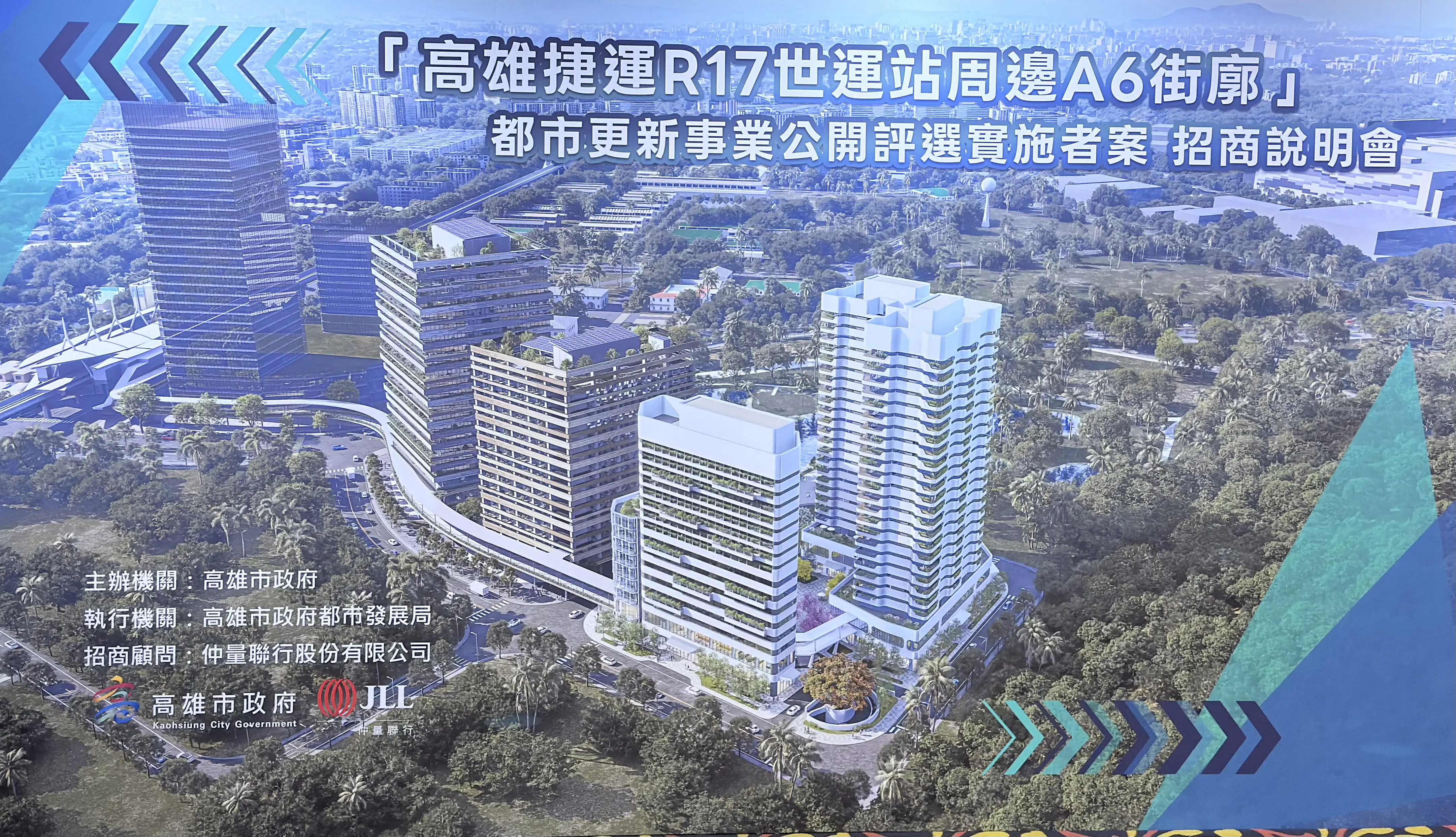 高雄市政府於今(27)日舉辦「高雄捷運 R17世運站周邊A6 街廓都市更新案」招商說明會,現場吸引近〇〇家國內知名建設公司、資產管理機構及投資公會代表熱烈參與。