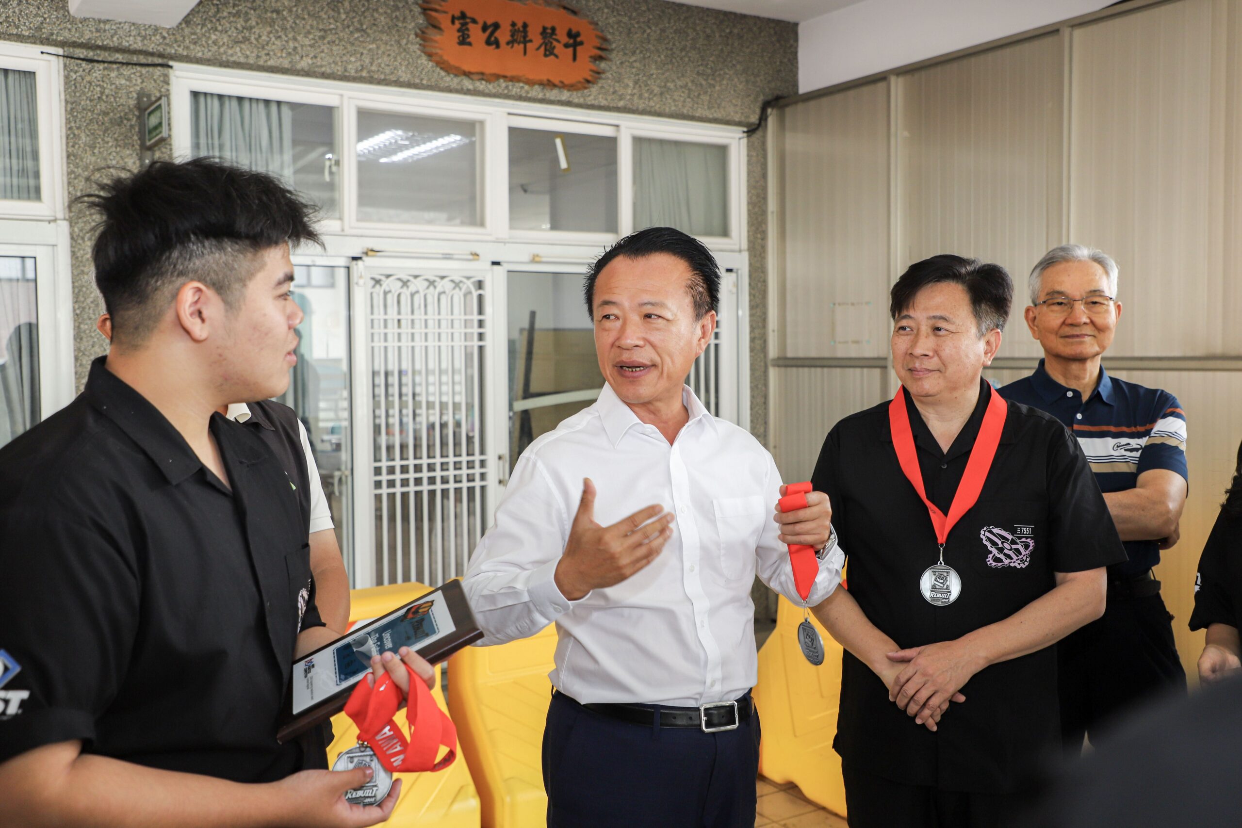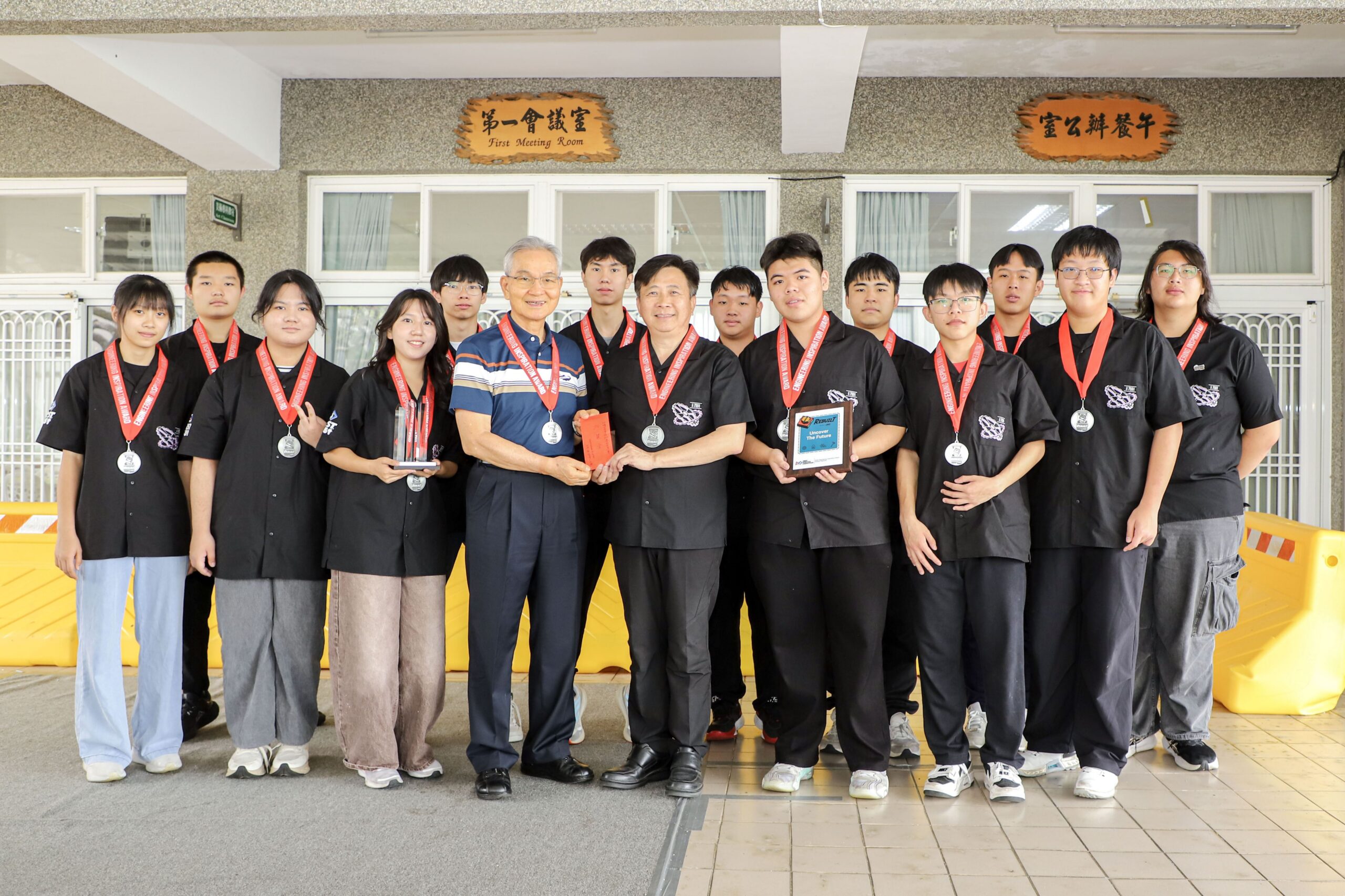 嘉義縣立竹崎高中機器人競賽代表隊「FRC7551」8日在美國紐約2026 FRC Gotham Regional Competition勇奪「工程啟發獎(Engineering Inspiration Award)」,成功晉級休士頓世界賽,嘉義縣長翁章梁今17日前往竹崎高中祝賀學生,聆聽學子在比賽過程的收穫及備戰方向。