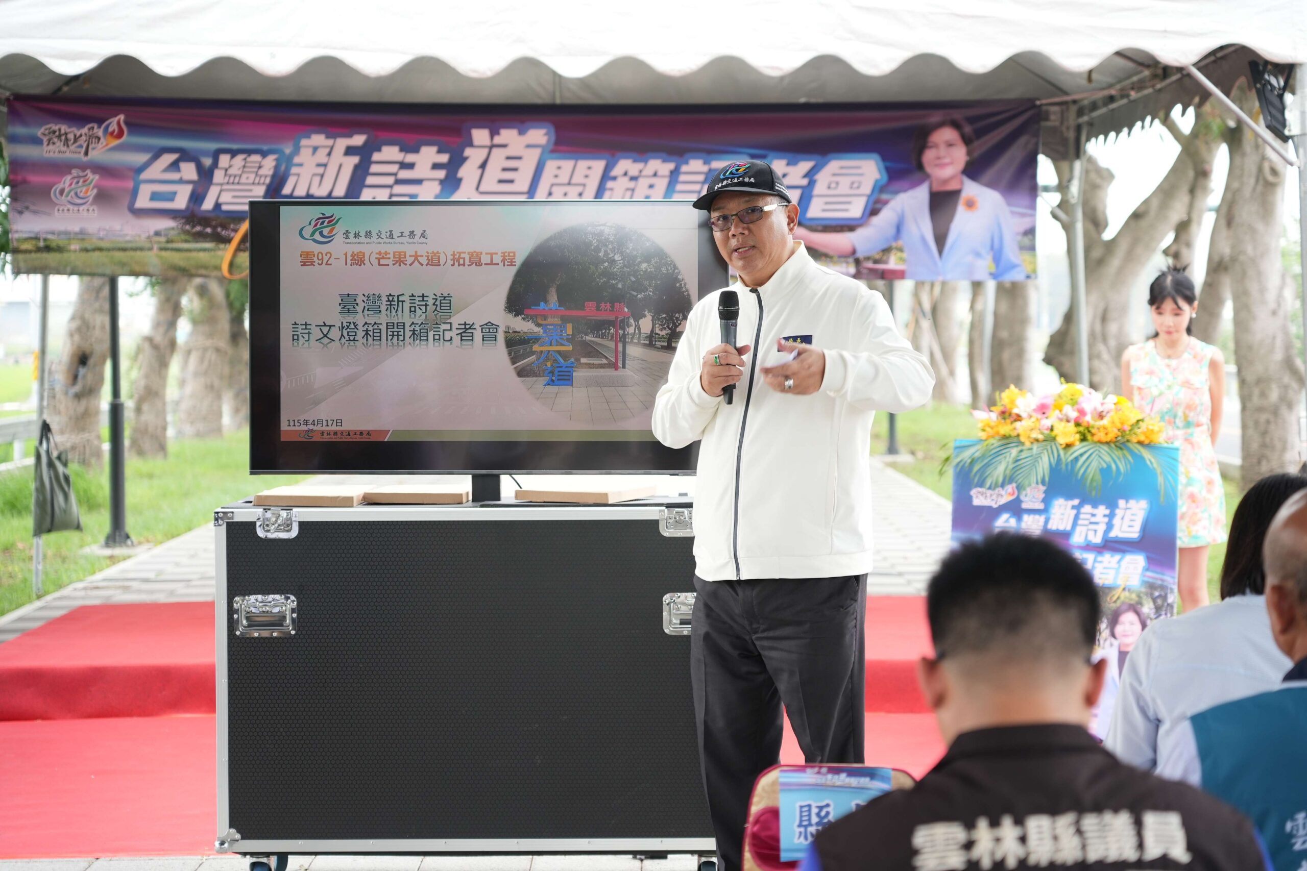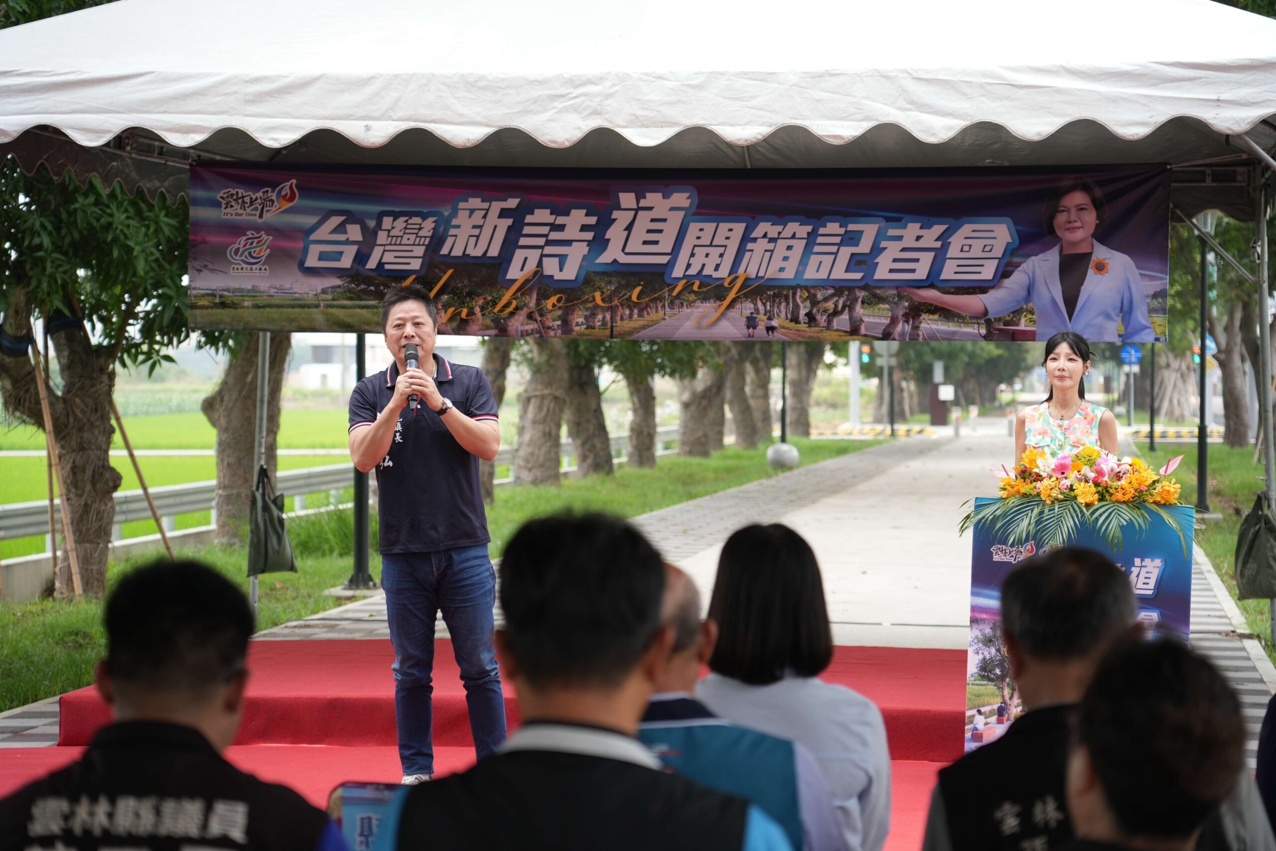 雲林縣政府於虎尾鎮雲92-1線(芒果大道)設置「台灣新詩道」詩文燈箱,17日舉行開箱記者會。縣長張麗善表示,「台灣新詩道」徵集縣內4位文學家、10首以在地元素創作的新詩,讓道路不僅是交通動線,更成為承載記憶與人文的生活場域。