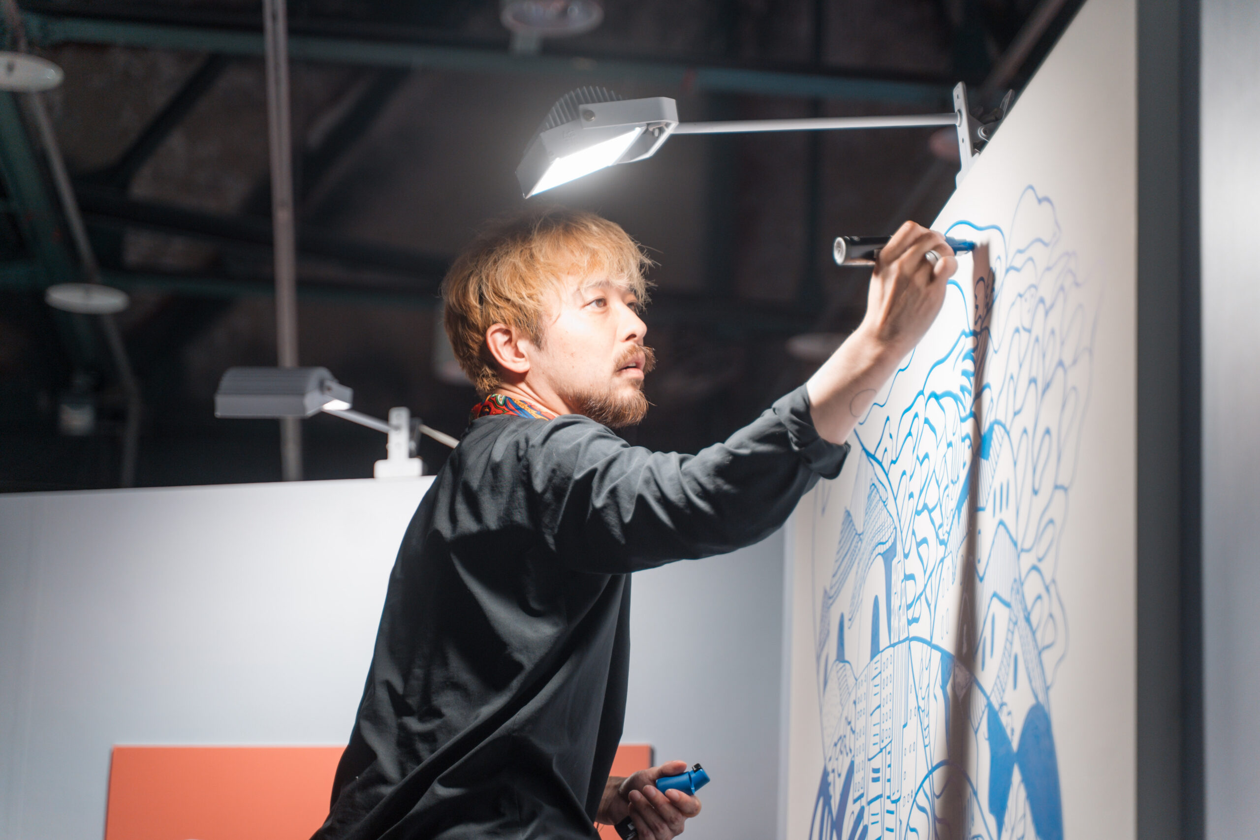 圖:日本插畫家 Daffy 以「空白」哲學詮釋留白情緒,粉絲們可透過近距離的接觸與互動,感受創作魅力。