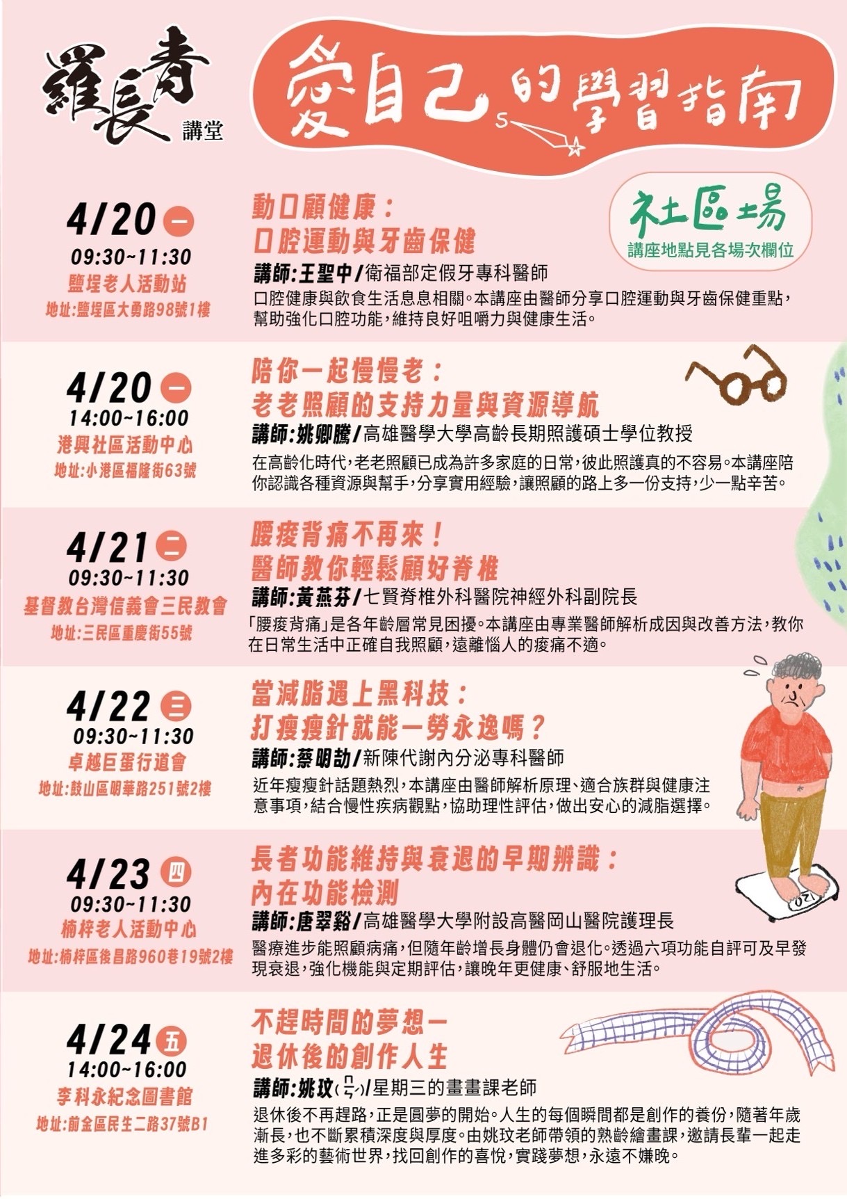 此外,衛生局今年推出「走出健康,幸福嘉義行」防治代謝症候群健走,規劃「樂活輕量組」、「活力進階組」、「強心耐力組」及「極致勇者組」,從每月約20萬步至累積100萬步不等,可依自身體能與生活型態選擇適合目標,逐步養成規律運動習慣,活動報名至115年4月30日止。