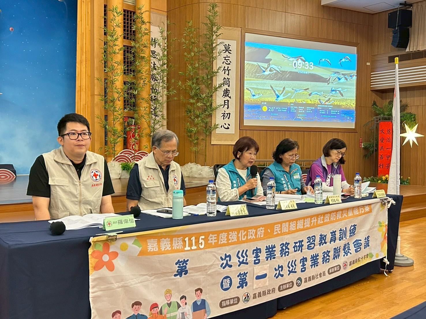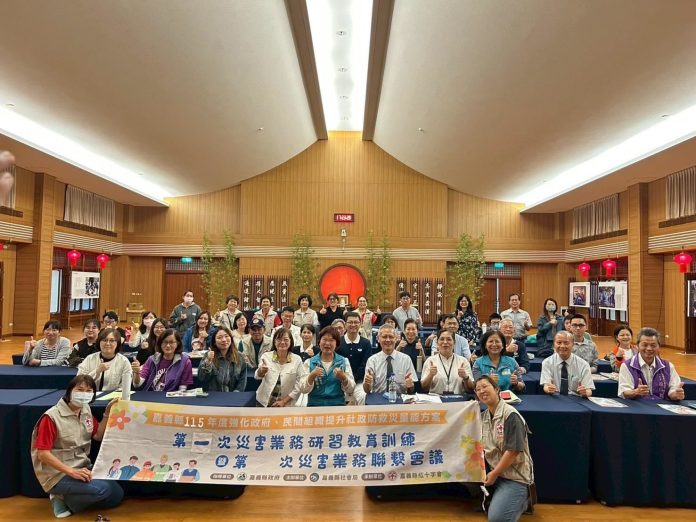 嘉義縣社會局結合紅十字會舉辦「災害防救聯繫會議與教育訓練」,邀集各鄉鎮市公所社政人員、社會福利機構及民間團體,透過跨單位交流,提升災害應變整合能力。