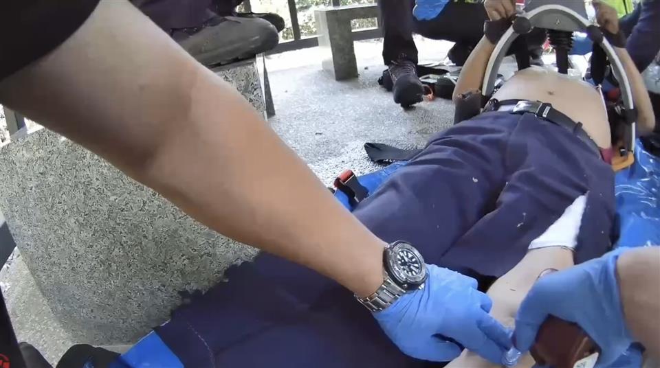 4月12日上午10時左右,南投縣政府消防局119勤務中心首先接獲報案,稱芬園鄉挑水古道有民眾倒地。現場友人第一時間撥打119求救,並在派遣員的指導下立即實施心肺復甦術(CPR)。消防局考量患者可能需要長距離搬運,因此派遣3輛救護車及9名救護技術員出勤。由於轄區位於彰化縣,因此立刻轉報彰化縣消防局,得知為OHCA患者,彰化縣也立刻派遣芬園分隊1名高級救護技術員及2名救護技術員出勤,形成現場12位救護人員聯手急救1位患者的特殊場景。