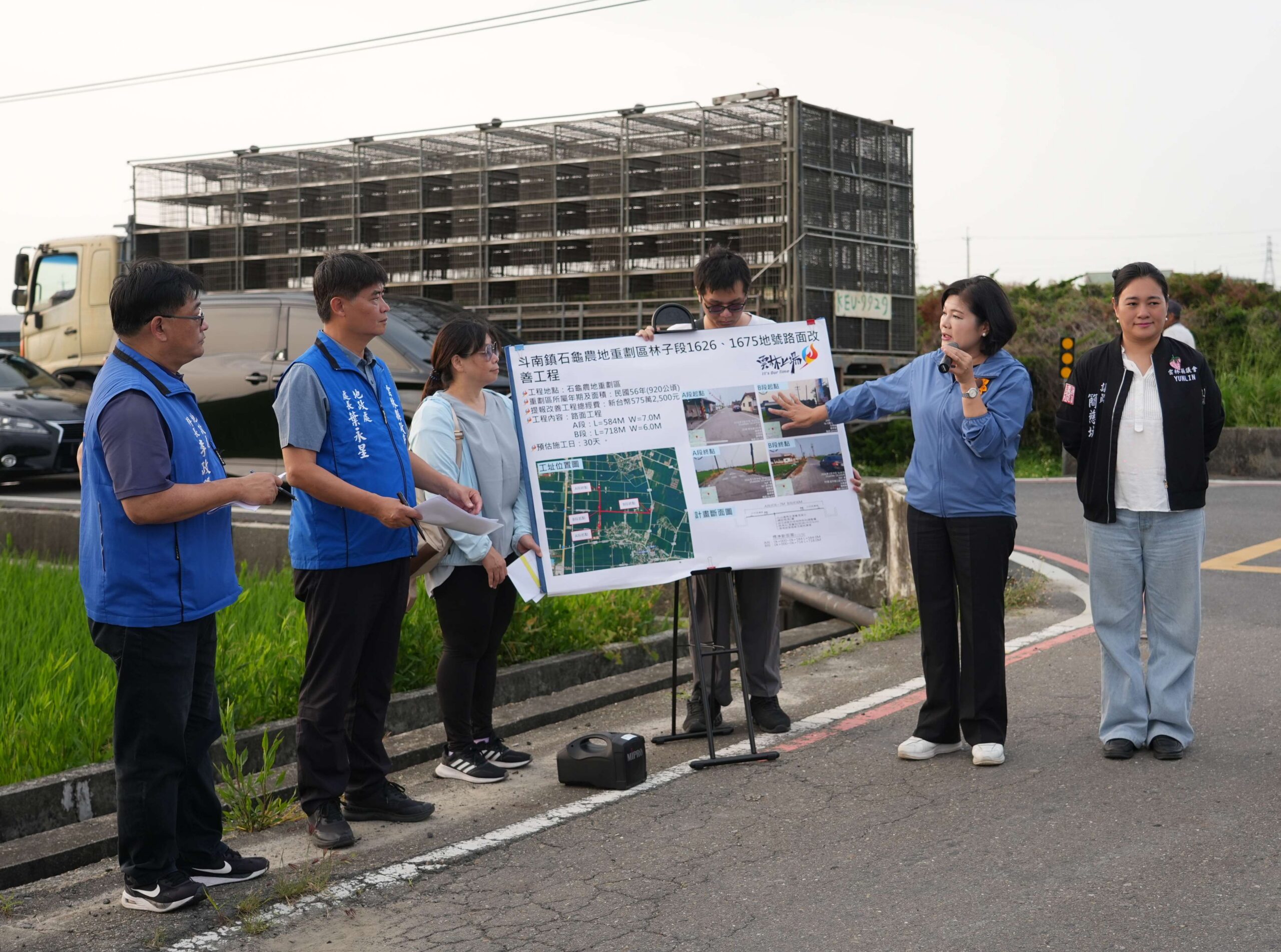張縣長表示,斗南鎮石龜農地重劃區於民國56年完成重劃,總面積達920公頃,區內部分農路因長期使用且缺乏整修,路面已出現龜裂與碎化現象,影響行車安全。此次在靖興里里長宋道周、林子里里長黃順助及地方民意代表反映下,由地政處辦理會勘,將優先針對損壞較為嚴重的林子段1626及1675地號農路進行改善,預計於6月進場施工。