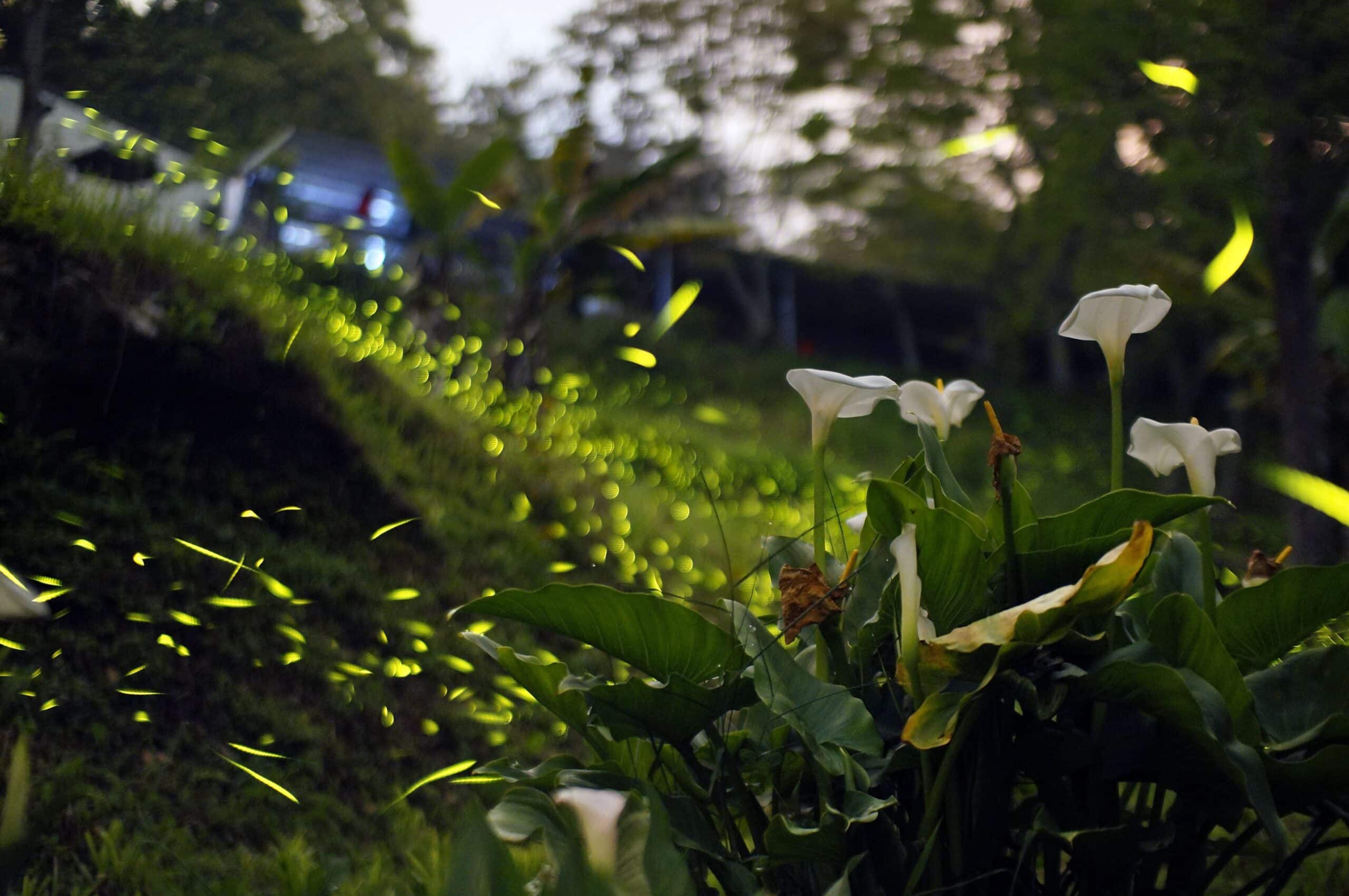 隨著夜幕低垂,瑞里的浪漫氛圍轉為螢光綠,位於阿里山林鐵交力坪與奮起湖之間的小站「水社寮車站」,因當地長期推廣低碳環境,意外保存最原始的生態棲地,每到螢火蟲季節,成千上萬的螢光在廢棄校園與鐵道邊閃爍,宛如鋪上一層「螢河地毯」,漫天飛舞的螢光美不勝收。