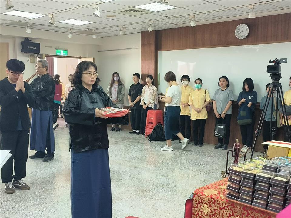 典禮由彰化縣文化局長張雀芬領銜主祭,重要傳統藝術保存者暨文化局南管實驗樂團指導老師林吳素霞帶領各研習班教師擔任樂官,以及南管研習丁班學員輪值司儀及祭生。執香奉禮、過程慎重,復現傳統道地的南管祭典。