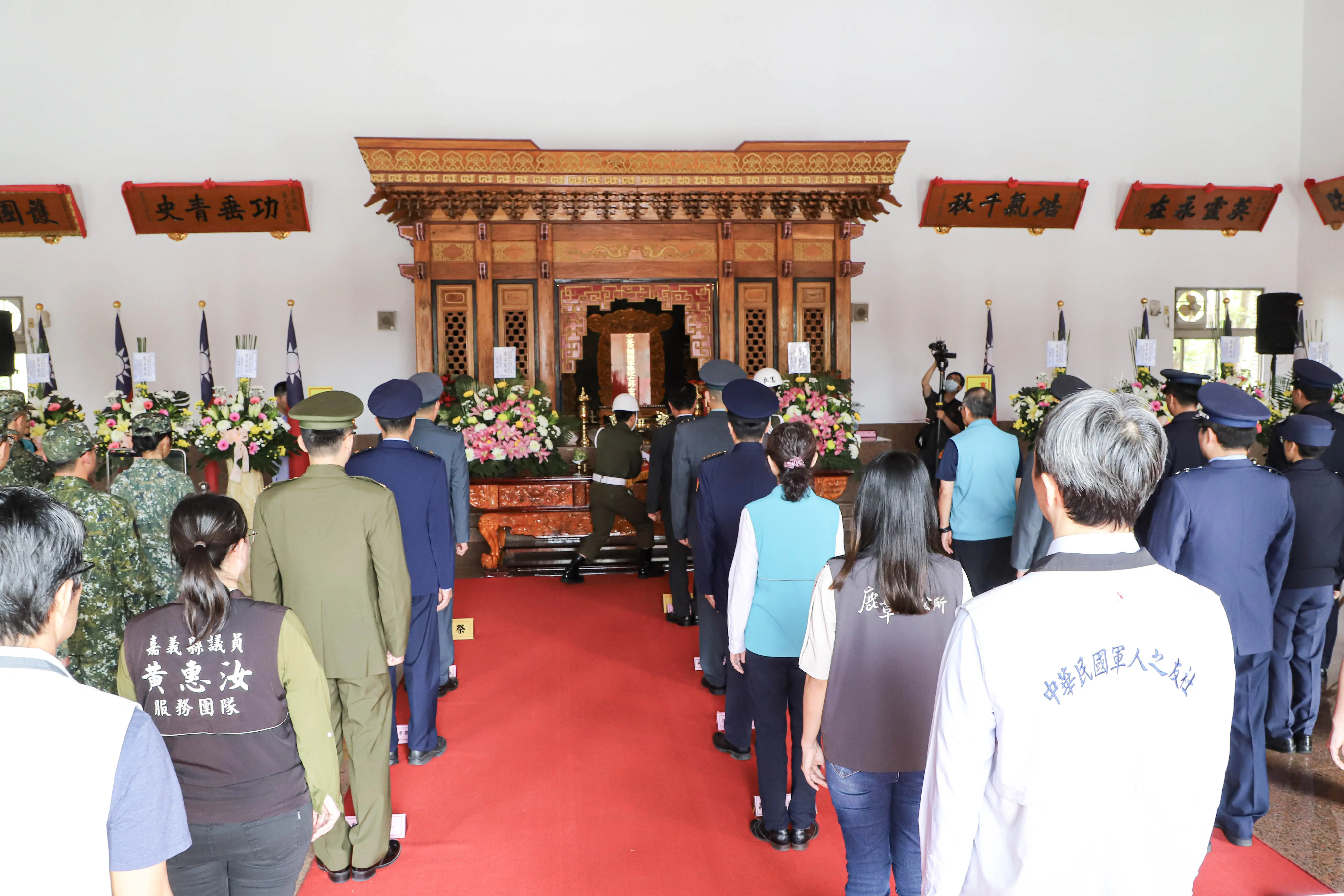 國殤祭祀由南區聯合測考中心、嘉義後備指揮部、嘉義後備旅、海巡署第五巡防區雲嘉指揮部、海巡署中部分署第四岸巡隊、空軍第四戰鬥機聯隊、嘉義憲兵隊、嘉義榮民服務處、嘉義縣市軍人服務站及國軍遺族、忠烈遺族、先民遺族等各界人士百餘人陪祭,場面莊嚴肅穆。