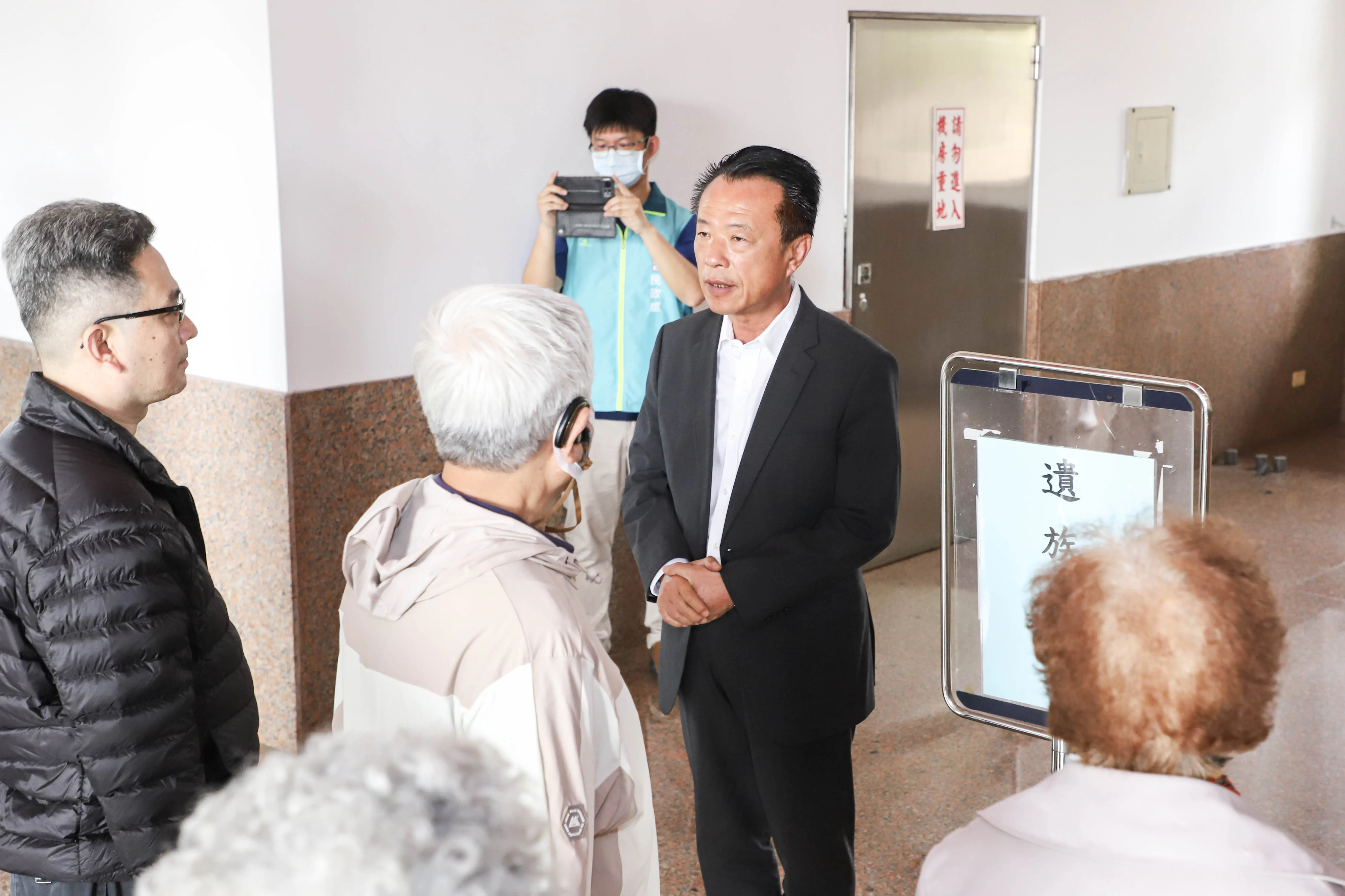 主祭官翁章梁率陪祭人員上香、獻花、獻果、獻酒,恭讀祭文後向列位國軍陣、公亡將士暨烈士靈位行三鞠躬禮,祭禮後翁縣長一一向遺族代表致意。