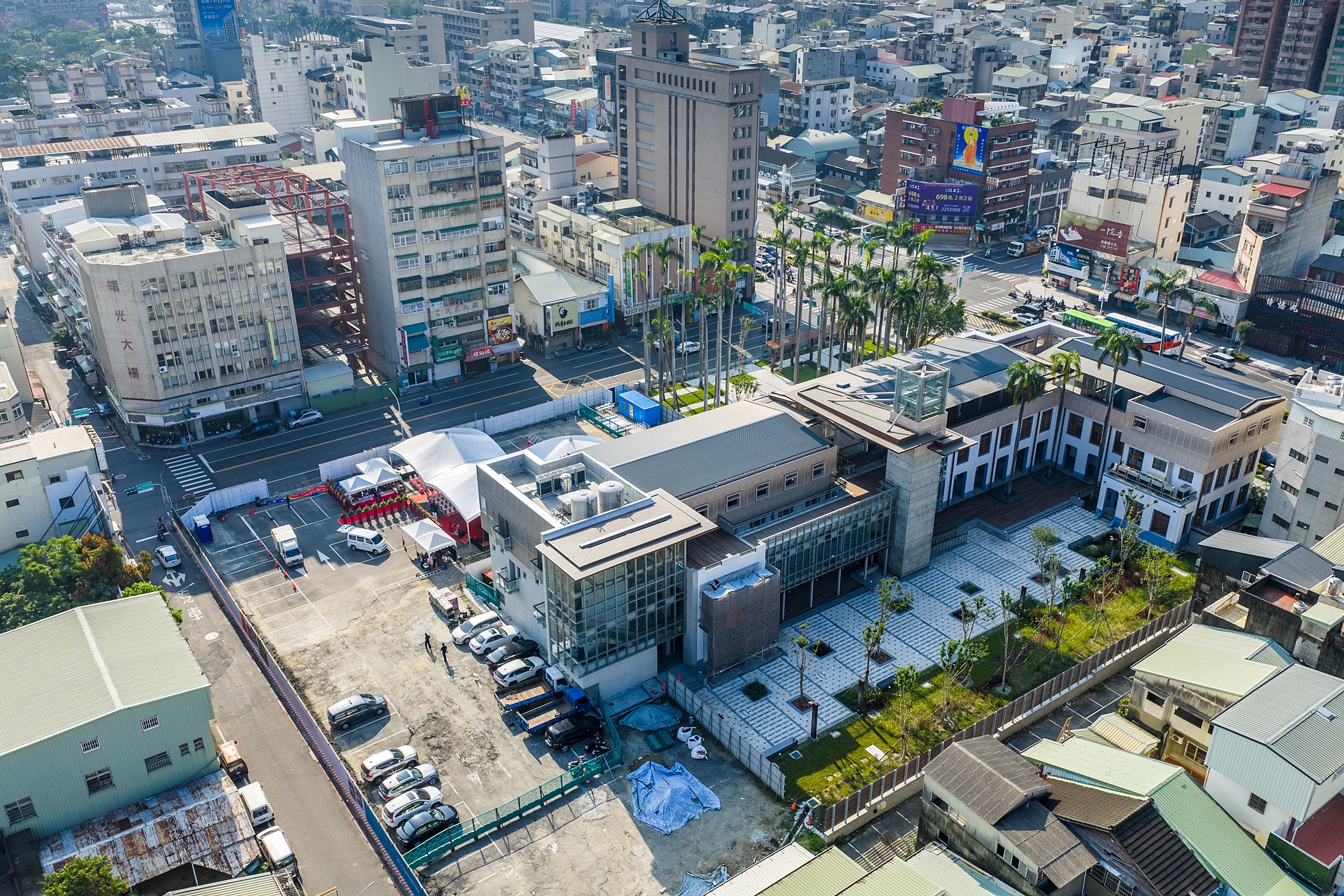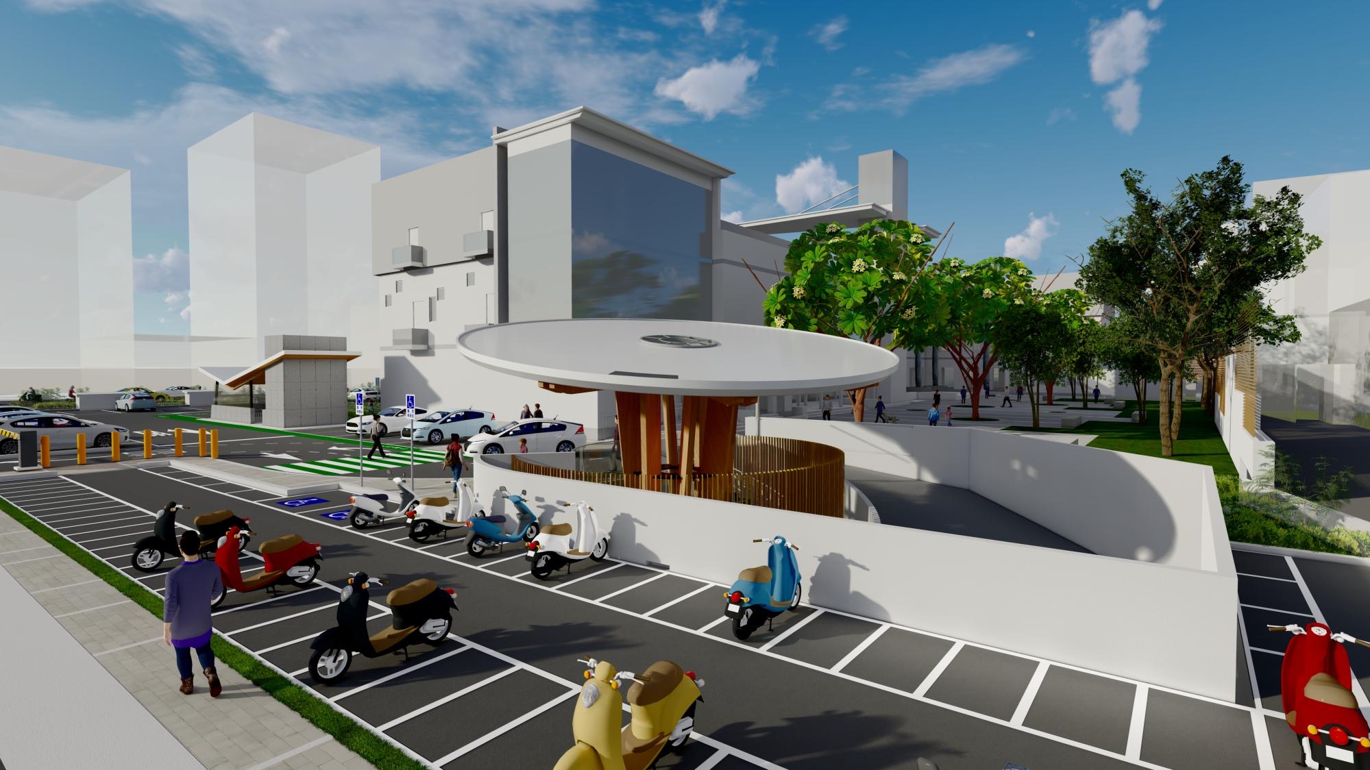 交通處長呂獎慧指出,本工程設計突破傳統停車場封閉形式,強調空間開放性與周邊環境整合,規劃地上一層、地下二層,預計提供143席汽車停車格,並設置18席YouBike站點,滿足多元運具轉乘需求。同時導入智慧化停車管理系統,並利用民生北路及康樂街進行汽機車進出分流;另考量街角開放空間視線,串聯歷史建築中庭景觀空間,提升整體環境品質。