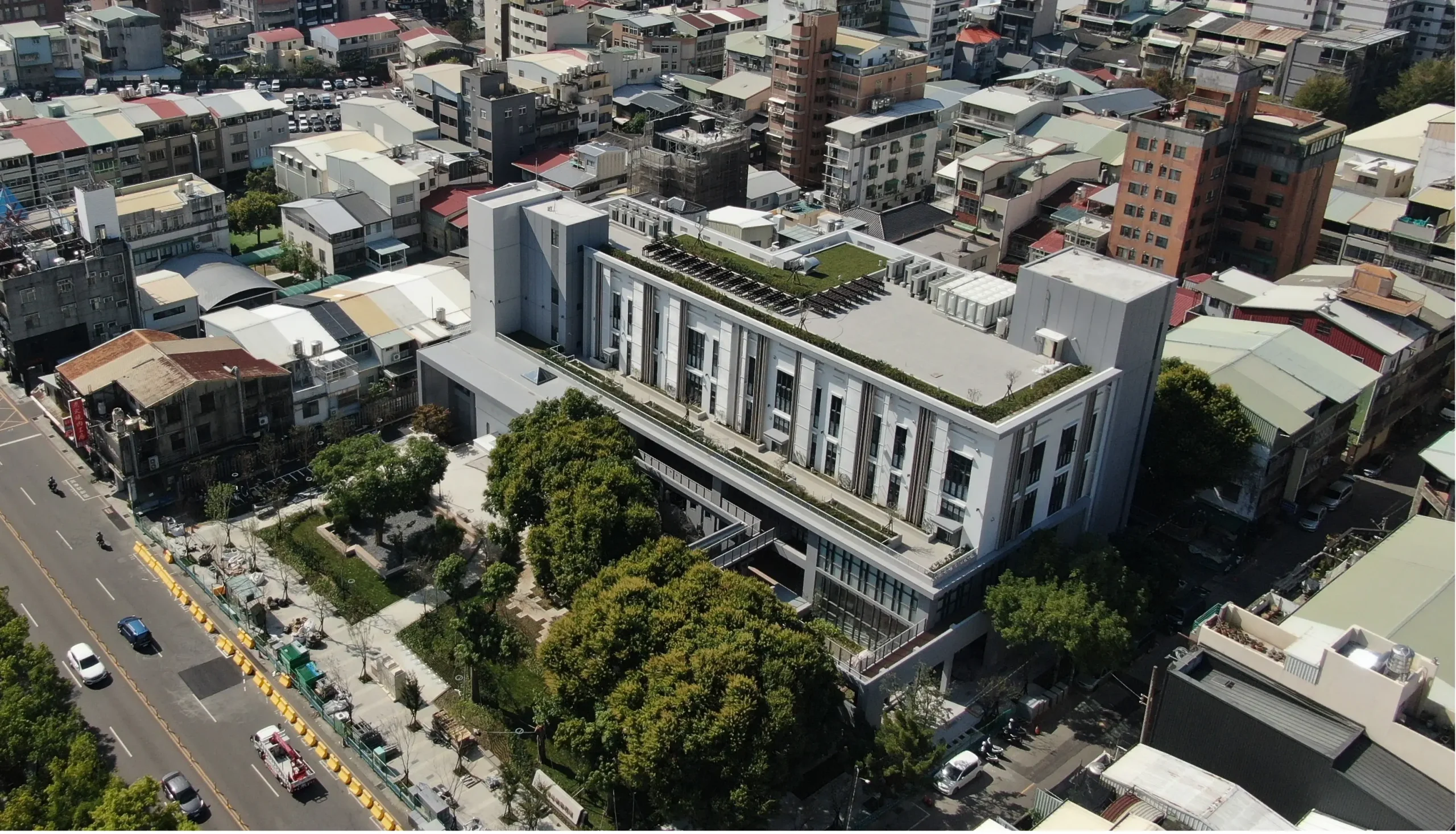 陳局長進一步說明,園區工程挑戰性高,為保留老樹與既有建築結構,設計與施工過程皆須精細規劃,讓自然生機與現代構造和諧共存。此工程曾榮獲「第25屆國家建築金質獎」肯定,展現市府對公共工程品質的嚴格把關。面對緊鄰審計新村與國美館的高人流區域,建設團隊在施工期間克服交通疏導及基地空間受限等挑戰,在兼顧工程進度與施工品質下順利完成竣工,確保市民擁有安全、舒適的公共空間。