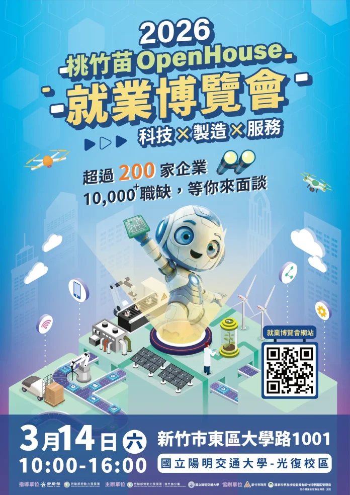 此篇文章最開始出處為: 2026桃竹苗OpenHouse就業博覽會3/14陽明交大登場