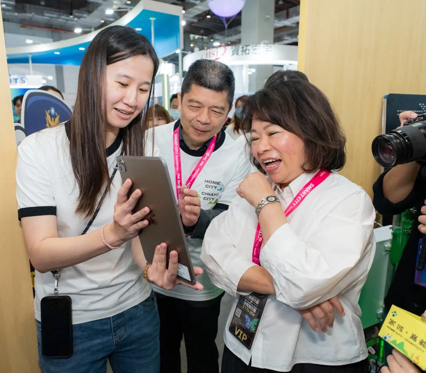2026智慧城市展在台北南港展覽館熱烈登場,「嘉義市政府主題館」以全國首創AR實境互動防詐遊戲《不准騙走我的罐罐!》吸引許多民眾闖關挑戰掀起熱潮,首日遊玩即突破2,000次,成為今年獨嘉大亮點。嘉義市長黃敏惠於開幕首日拿起平板體驗這款AR防詐遊戲,在「廢柴探長」的引導下,穿梭於虛實整合的詐騙情境中,一步步破解詐團的話術陷阱。