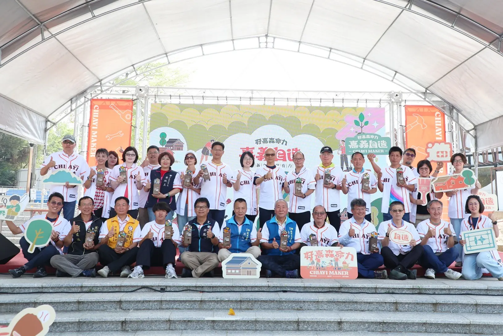 嘉義市政府環境保護局今(29)日在KANO遊客中心前廣場舉行「114年度嘉義市社區規劃師駐地環境改造計畫成果展」,並同步規劃10組社區共好主題展,展現嘉義市「舊料再生、社區自造」的行動成果。嘉義市副市長陳永豐代表市長黃敏惠出席成果展,並頒發「Chiayi DNA獎盃」表揚獲獎社區,鼓勵社區規劃師持續投入環境改造與社區共好。