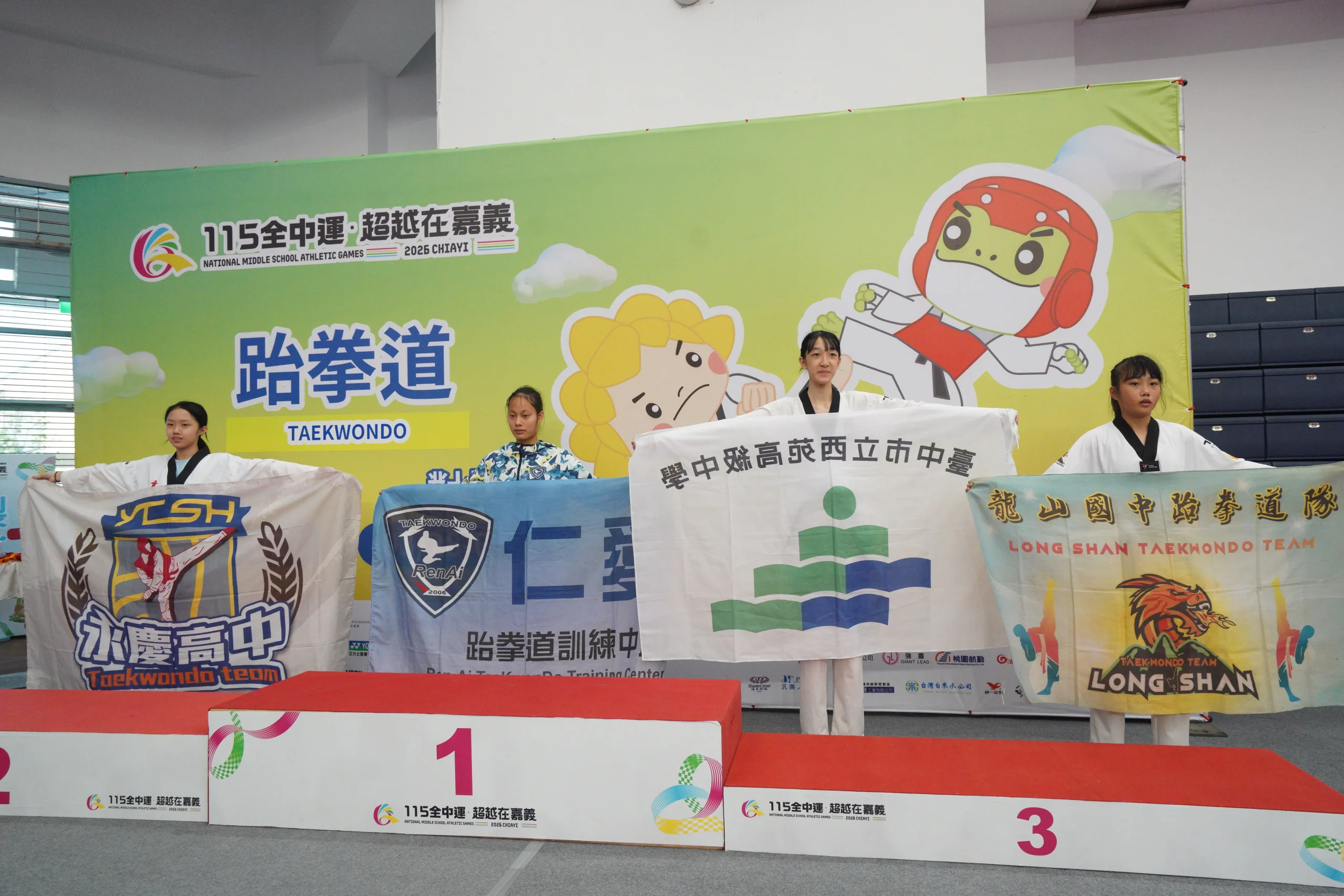 115年全國中等學校運動會跆拳道對打賽事開打首日,嘉義縣即傳出捷報,就讀永慶高中國中部的選手陳彥蓉,在國女組49公斤級賽事中奮戰到底,最終勇奪銀牌,為地主嘉義縣摘下本屆全中運首面獎牌。