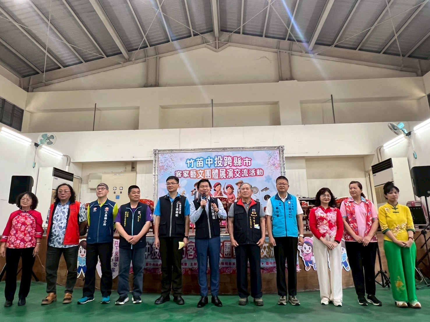 台中市政府客家事務委員會為促進客家藝文團體跨縣市交流合作,深化文化傳承與展演能量,協同中市陽明客家協會11日(六)在豐原區豐圳里活動中心舉辦「竹苗中投跨縣市客家藝文團體展演交流活動」,除了台中在地客家藝文團體外,亦邀集新竹、苗栗、南投等地藝文團體齊聚一堂,透過展演交流與互動分享,展現各縣市客家文化多元樣貌與活力。