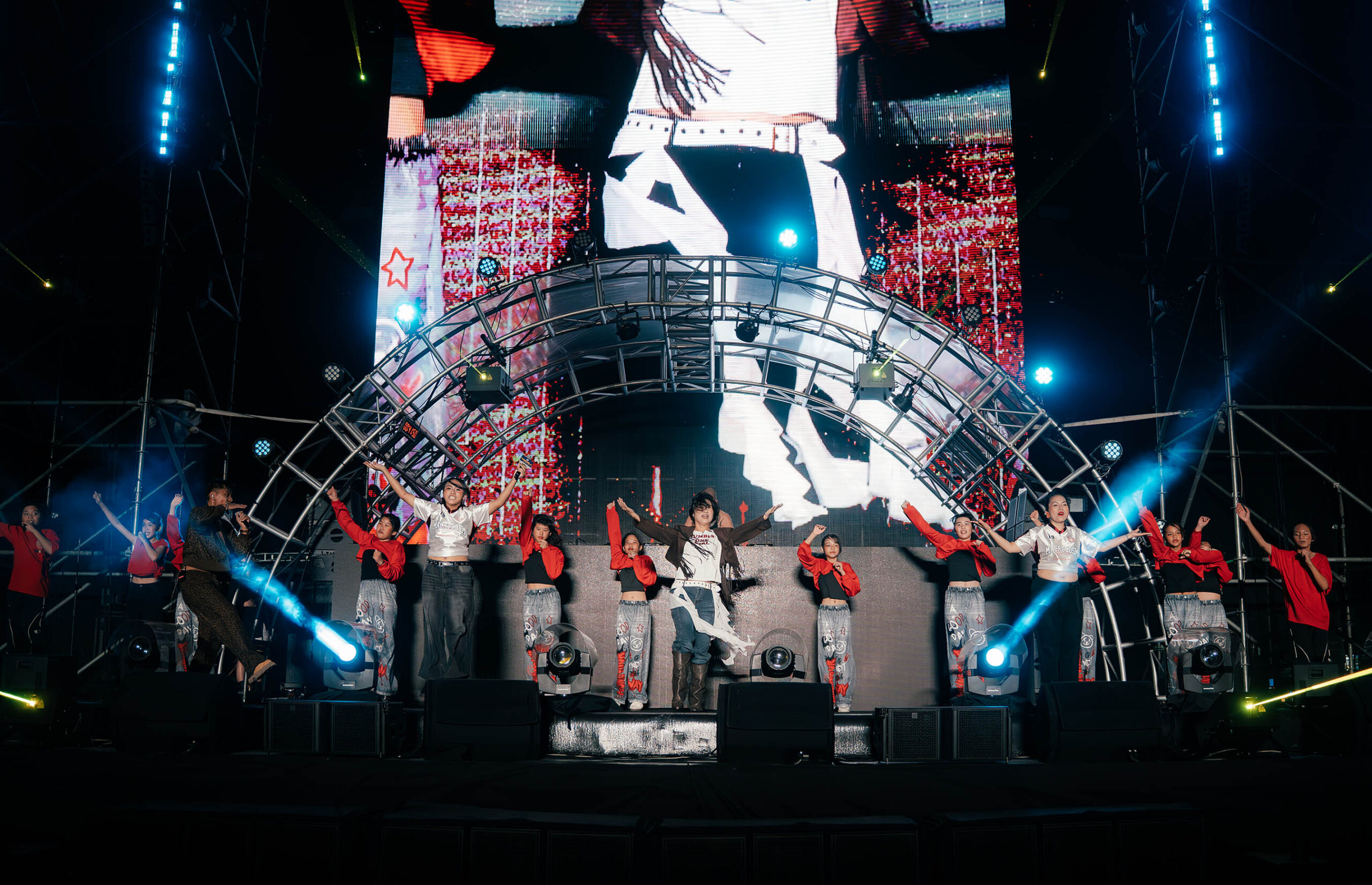中段由舞團CHARLIE’S ANGELS帶來高強度熱舞組曲,〈WE GO UP〉、〈Forever Young〉、〈Pink Hoodie〉連發,搭配電音節拍讓草地瞬間變身大型舞池,觀眾隨節奏擺動,歡呼聲此起彼落。