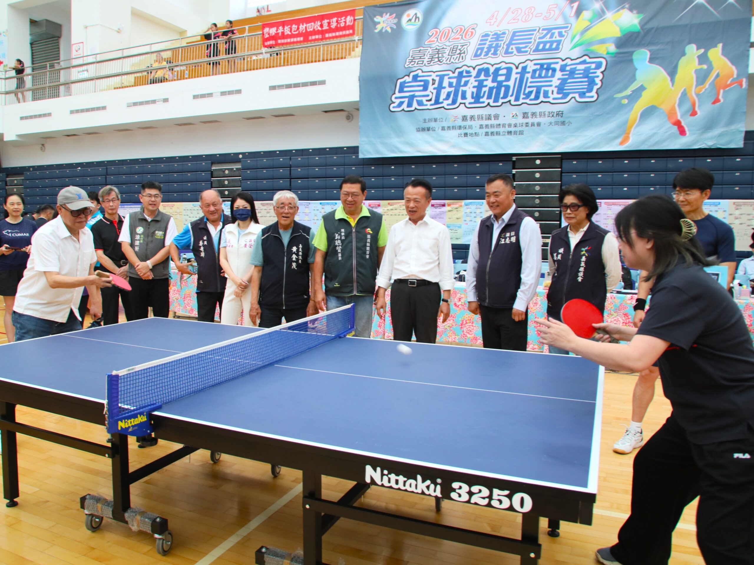 嘉義縣年度桌球盛事「議長盃桌球錦標賽」於4月28日至5月1日在縣立體育館盛大登場。今(29)日上午舉行開幕典禮,縣長翁章梁及議長張明達共同為賽事開球,正式啟動為期四天的比賽。