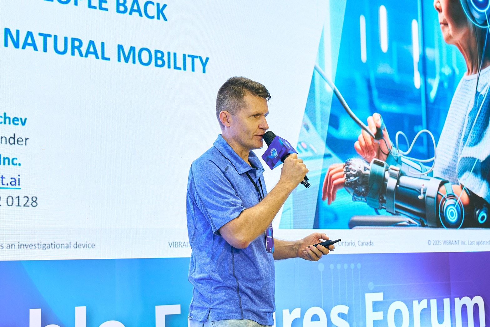 在醫療科技領域中,三家國際新創展示了AI如何延伸醫療邊界:來自加拿大的VIBRAINT研發全球首創的腦控復健機器人,結合非侵入式腦機介面、AI與VR,協助癱瘓患者恢復手部動作,預計2027年進入市場。來自日本的Surg Storage以AI結構化技術處理手術影像資料,協助醫療機構與AI開發公司建置標準化醫療數據,打造次世代醫療資訊基礎建設。同樣來自日本的Chiral打造虛擬藥物開發一站式平台,協助藥廠優化運算流程、縮短研發週期,提升AI藥物篩選準確性與效率。