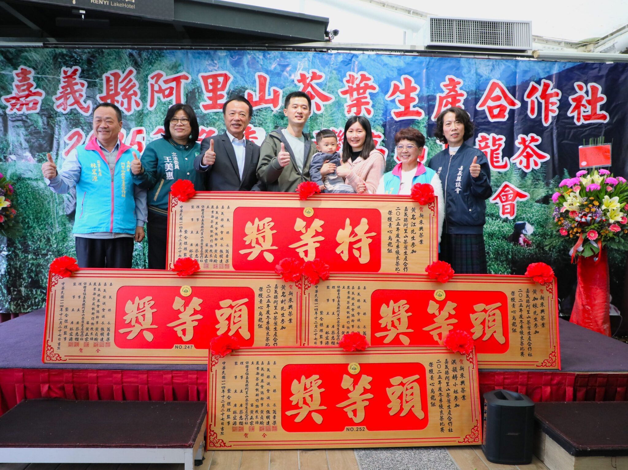保證責任嘉義縣阿里山茶葉生產合作社今(27)日在番路鄉仁義湖岸大酒店舉辦「2025年冬季台灣高山烏龍茶優良茶頒獎典禮暨展售會」。嘉義縣長翁章梁親自出席並頒發匾額,對獲獎者表示祝賀,並勉勵業者持續努力,保持優異表現。