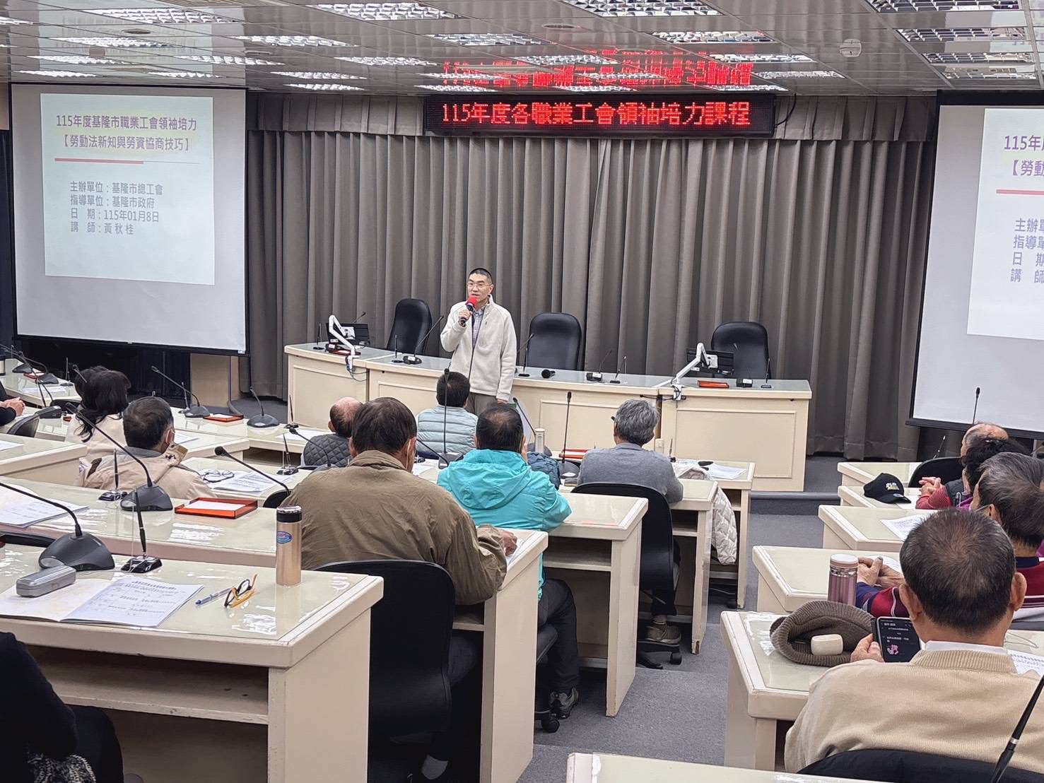 基隆市總工會為強化轄屬各職業工會幹部之專業素養與領導能力,於8日辦理「基隆市職業工會領袖培力課程—勞動法新知與勞資協商技巧」。本次培力課程謝國樑親自參與,聚焦於「勞動法新知」與「勞資協商技巧」兩大主軸,總計40人參加,內容兼顧理論與實務,期能全面提升工會領袖之專業能量。