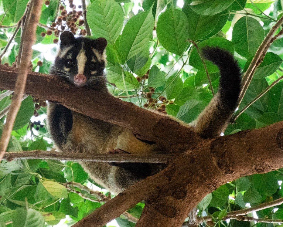 新莊體育園區,不但有4座以球類及田徑運動為主題的特色遊戲場,日前還有民眾目擊白鼻心(俗稱果子狸),悠哉地趴在樹幹上與市民共享這座城市。白鼻心近年來已在城市中建立族群,是城市與自然共榮發展的結果,提醒市民朋友,請勿餵食或逗弄白鼻心,以免驚擾牠們或發生誤傷情況,與野生動物保持距離,共享自然空間。