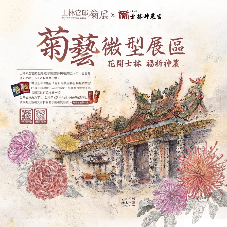 來到士林官邸賞花,建議大家能夠一同安排周邊景點行程,如到鄰近的士林夜市商圈享用美食、前往士林神農宮祈福、打卡以「夢想啟航」為概念設置的微型菊藝展區;或是逛逛串聯周邊超過60家特約商家,使用花展期間的專屬優惠,無論是來一碗士林小吃,還是帶一束菊花造型的文創小物回家,都讓賞花之旅更具人情味,不僅省了荷包又能夠感受到在地店家的風情。