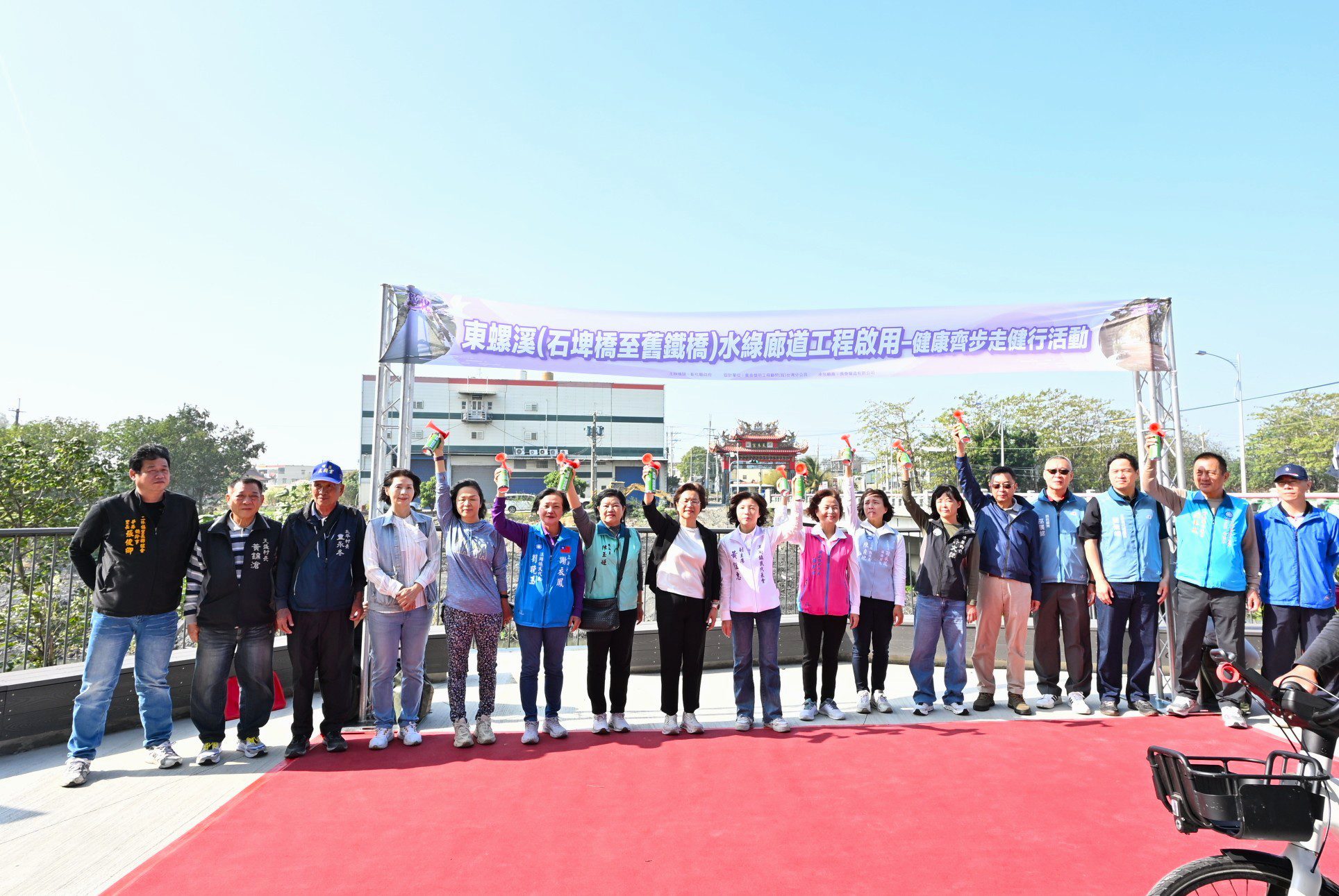 彰化縣政府為提升東螺溪整體遊憩品質及環境保育,推動「東螺溪(石埤橋至舊鐵橋)水綠廊道工程」,歷時2年,已於114年9月正式完工,今(21)日上午舉辦「東螺溪健康齊步走」活動,彰化縣長王惠美與會。王縣長表示,本案總經費2億4,917萬元,感謝中央經濟部水利署以及交通部觀光署補助2億421萬元,縣府在議長謝典霖及所有議員的支持下自籌4,496萬元,感謝周邊居民在施工期間的包容,期望透過點線面串聯,帶動地方觀光休憩發展。