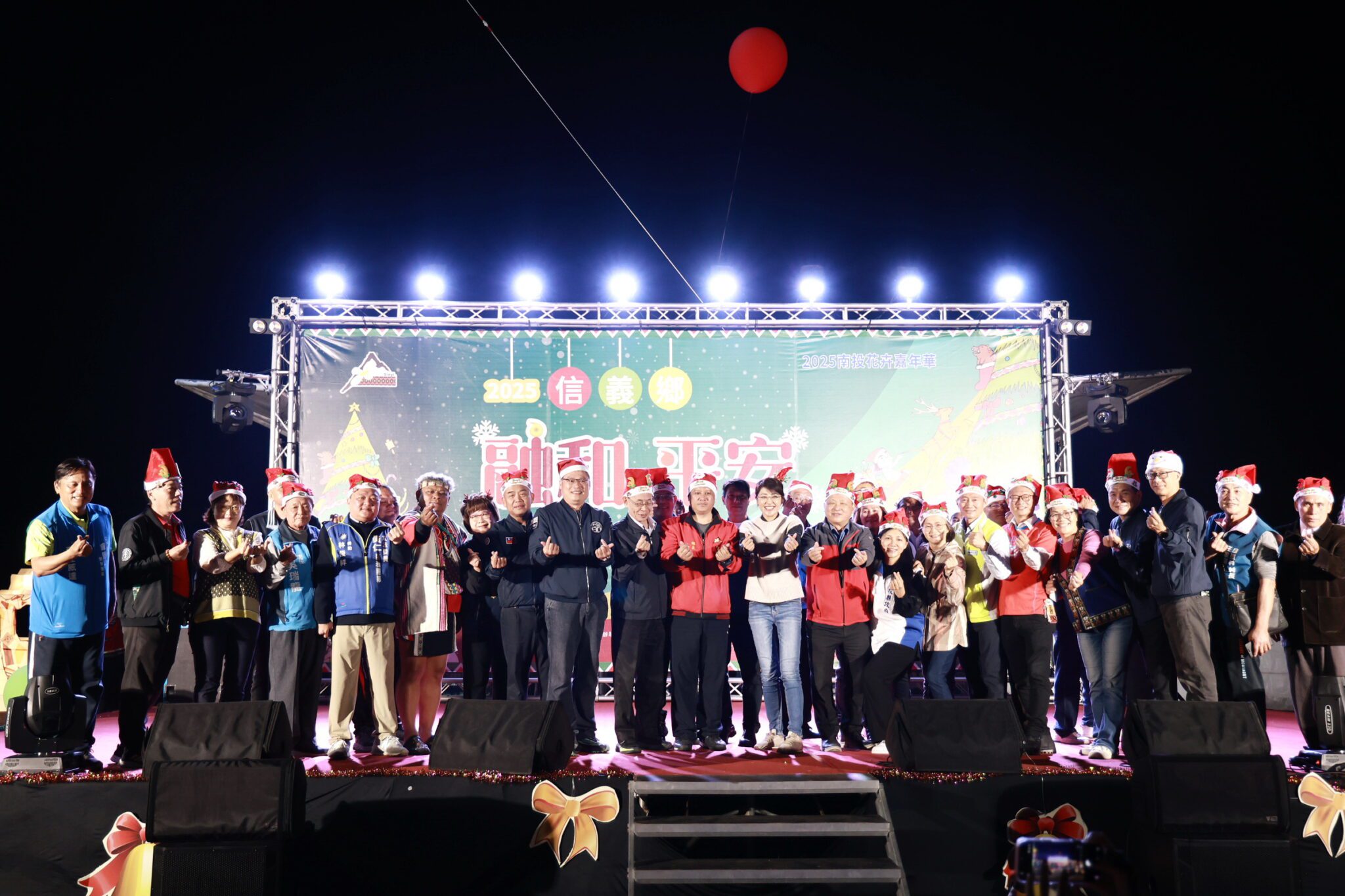 許縣長為信義鄉羅娜聖誕樹點燈 與遊客共度歡樂平安夜 2025南投花卉嘉年華系列活動-信義鄉羅娜聖誕活動,24日晚間在羅娜村羅娜文化景觀園區盛大展開,除有27公尺高的閃亮聖誕樹,還有沿著部落大街打造的燦爛燈海隧道,加上精彩節目連串的天主堂聖誕晚會及火把部落巡禮報佳音等特色活動,吸引大批人潮湧入,縣長許淑華與信義鄉長全志堅帶領貴賓們共同點亮聖誕樹主燈,互相高聲祝福聖誕快樂。