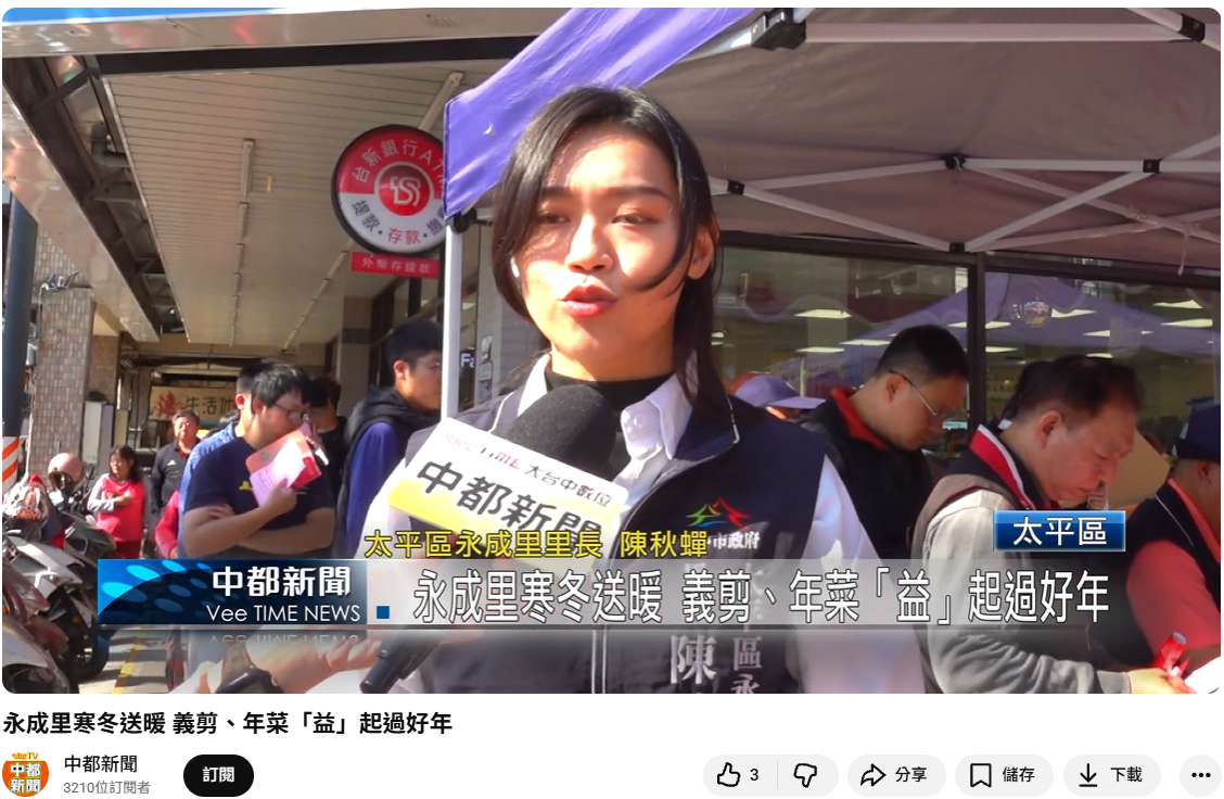 太平區永成里里長-陳秋蟬表示:「本次活動集結學生志工、在地理髮店老闆娘、熱心里民及社區夥伴共同參與,不分年齡與身分,齊心投入公益服務行列,展現社區強大的凝聚力與互助精神。」;參與活動的里民表示,看見大家自發性出錢出力、互相扶持,令人感動,也期盼未來能將這份愛心持續傳承,讓社區關懷精神在新春佳節中代代延續。